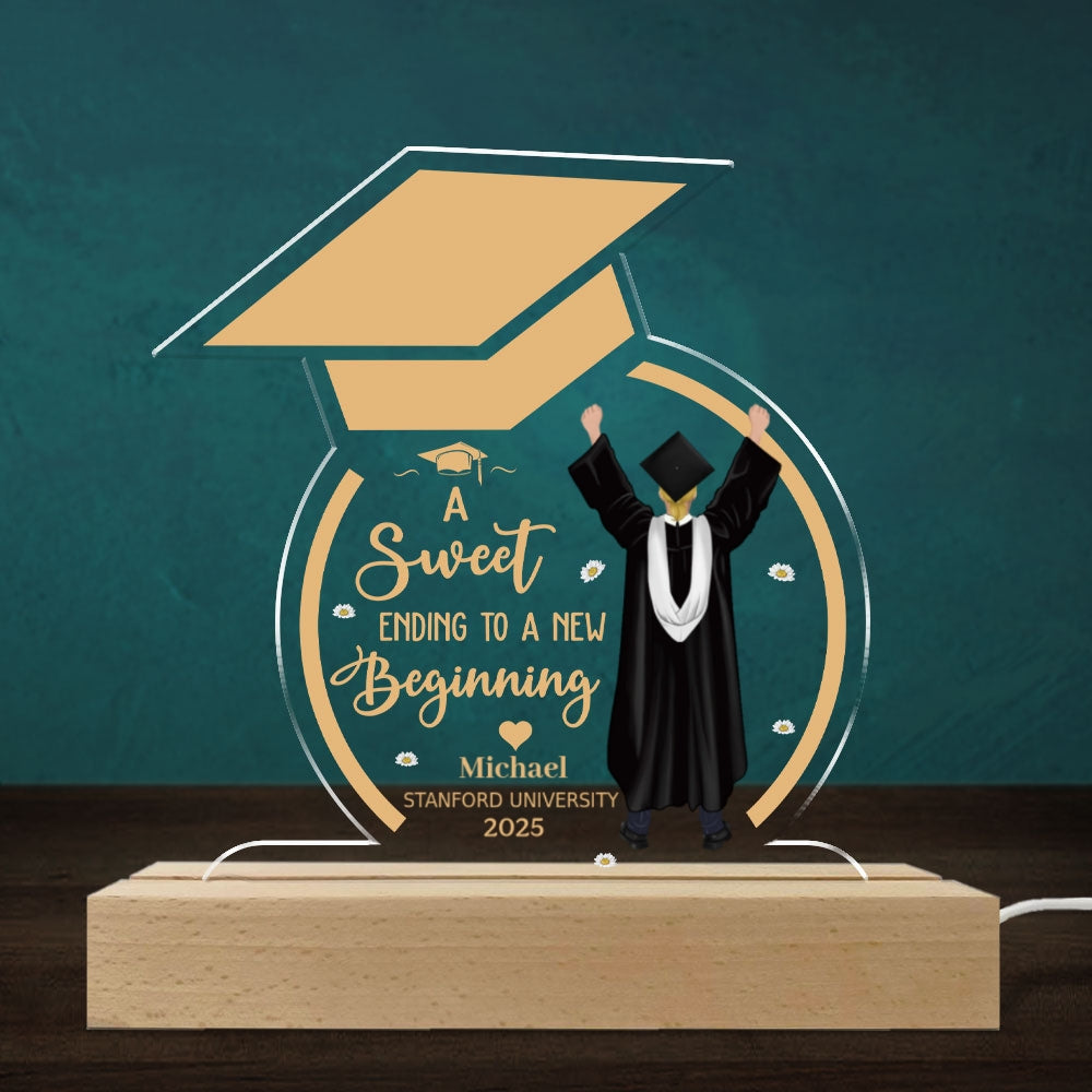 Add a touch of magic to any bedroom with our LED Night Light. The see-through acrylic plaque looks cozy and stylish during the day. while the soft LED lights create a warm and inviting atmosphere at night. Perfect for graduation ceremony. Add some charm and comfort to your bedtime routine now!