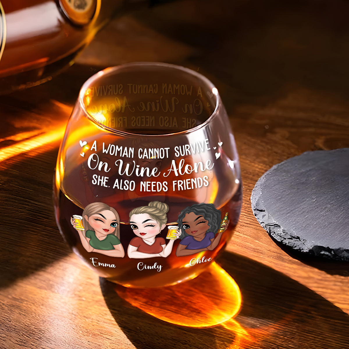 A Woman Cannot Survive On Wine Alone - Personalized Custom Wine Glass