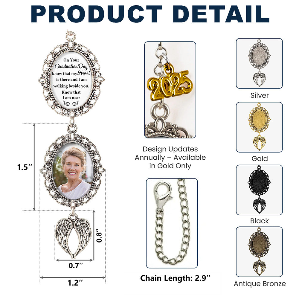 Personalize this charm with a photo of your loved one. and easily attach it to your graduation tassel to add deeper meaning to your cap. This thoughtful gift is perfect for daughters. sons. friends. and loved ones—honoring those who have inspired and guided you from above.