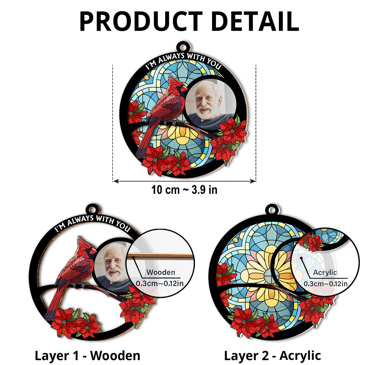 Always With You Memorial Heart - Personalized Custom Suncatcher Ornament