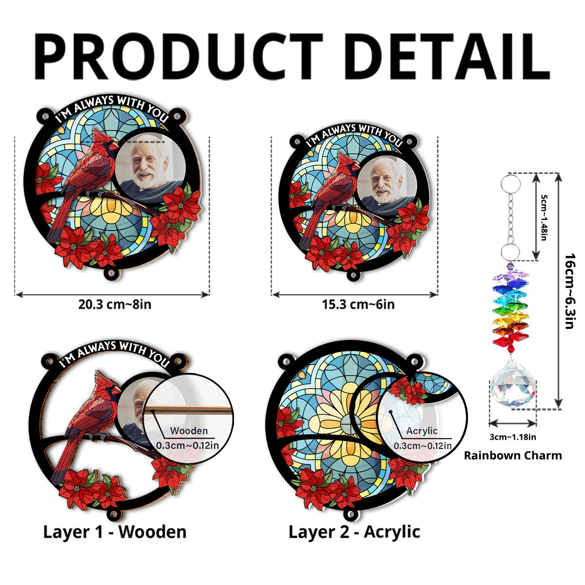 Always With You Memorial Heart - Personalized Custom Suncatcher With Crystal Rainbow Charm