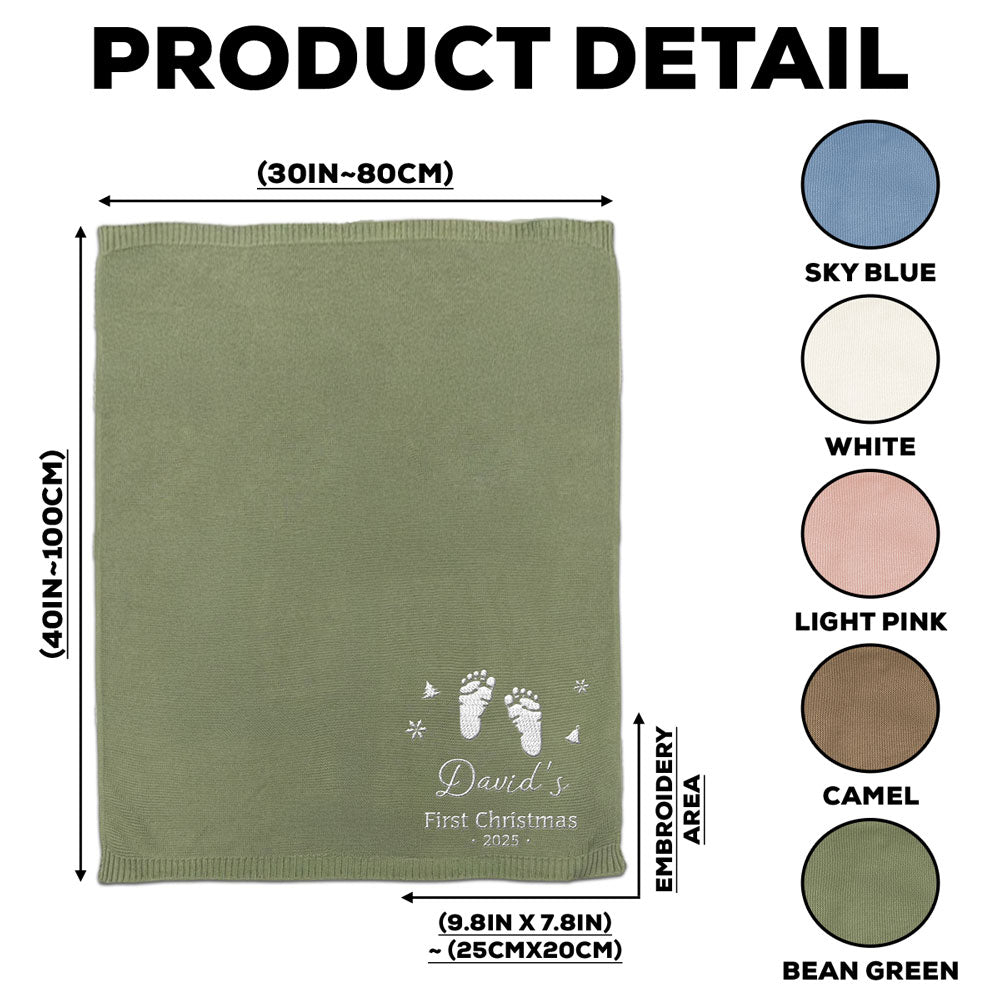 Baby First Christmas - Personalized Custom Embroidered Knitted Baby Blanket