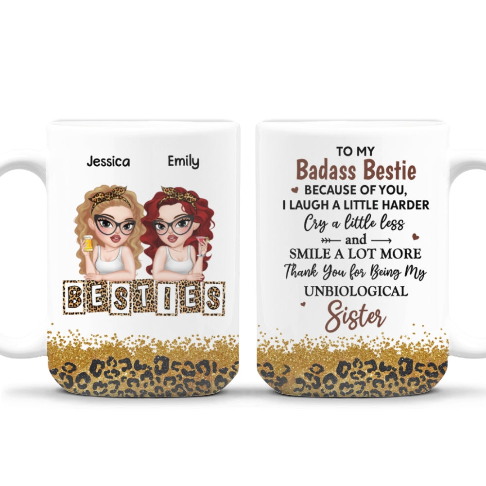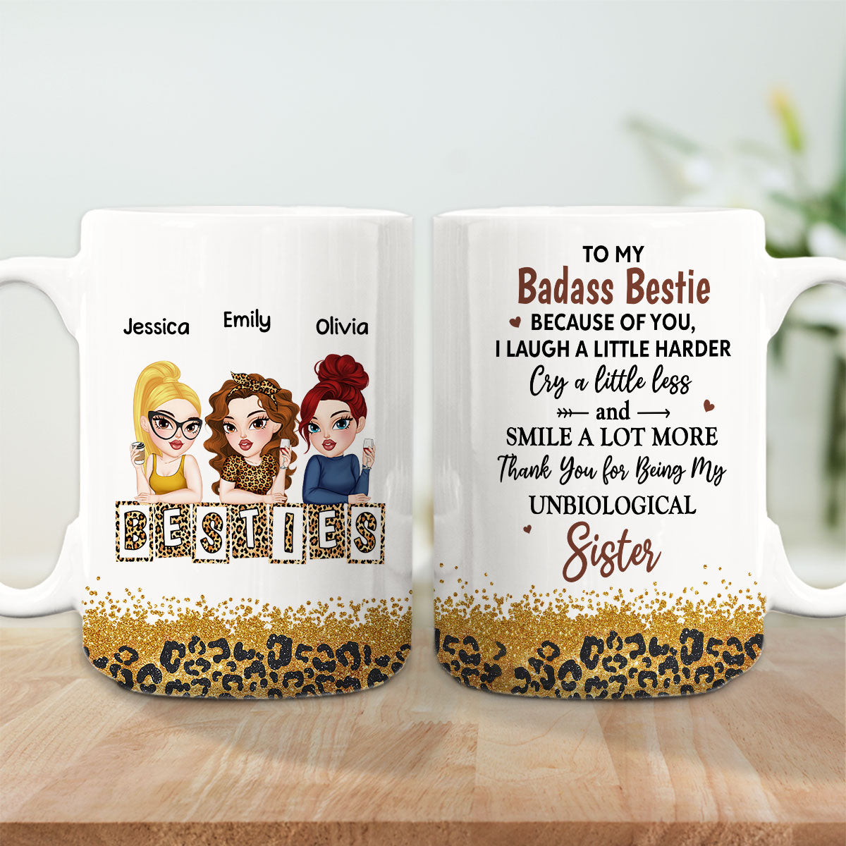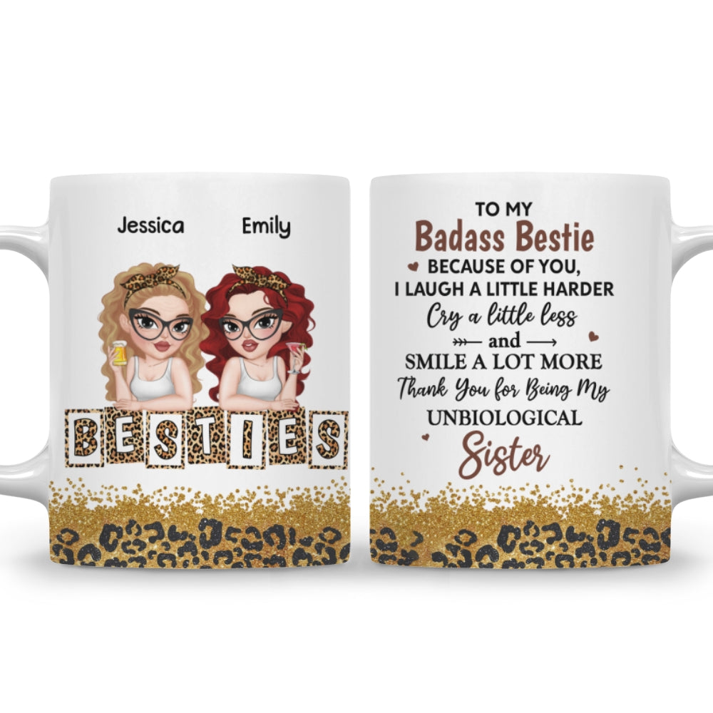 Because Of You I Laugh A Little Harder My Badass Bestie - Personalized Custom Coffee Mug
