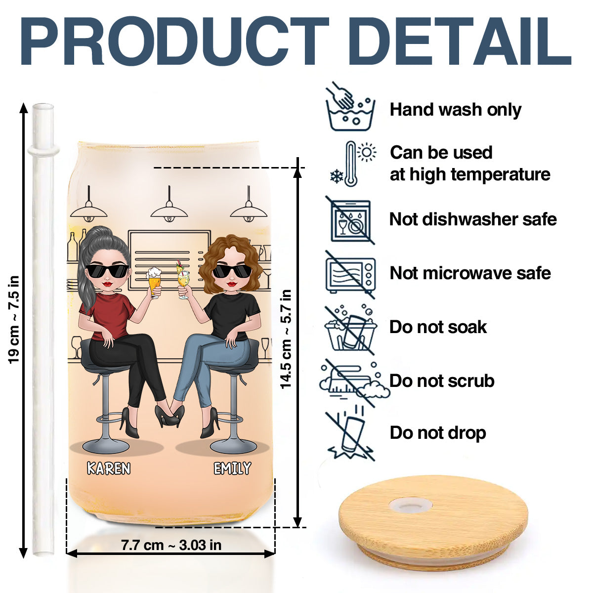 - Package: 01 ombre frosted glass can with a wooden lid and plastic straw.