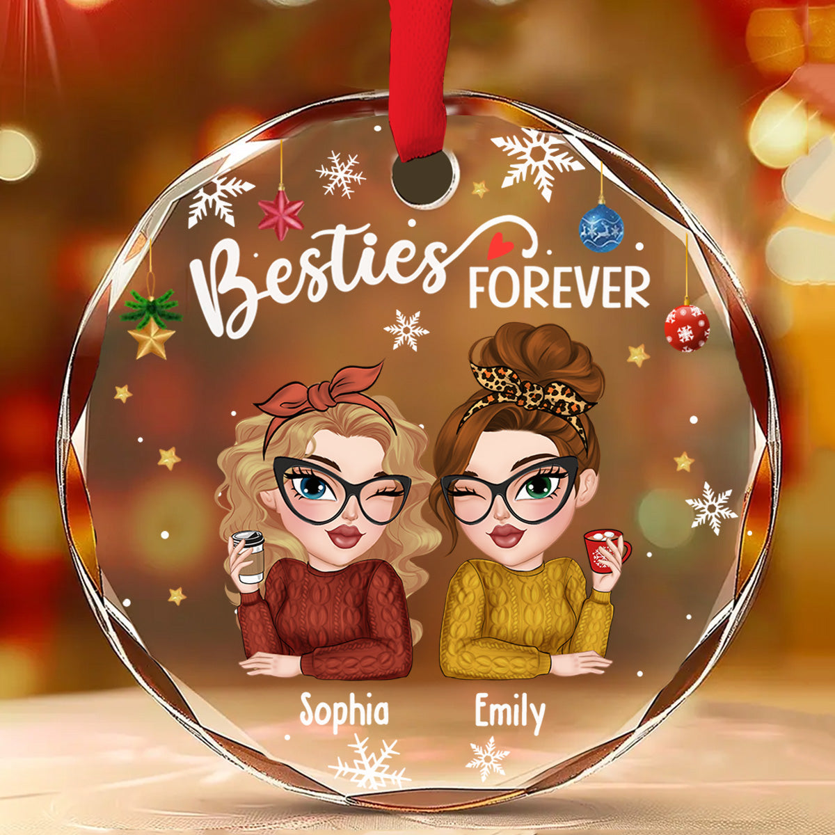 Besties Forever Christmas - Personalized Custom Glass Ornament