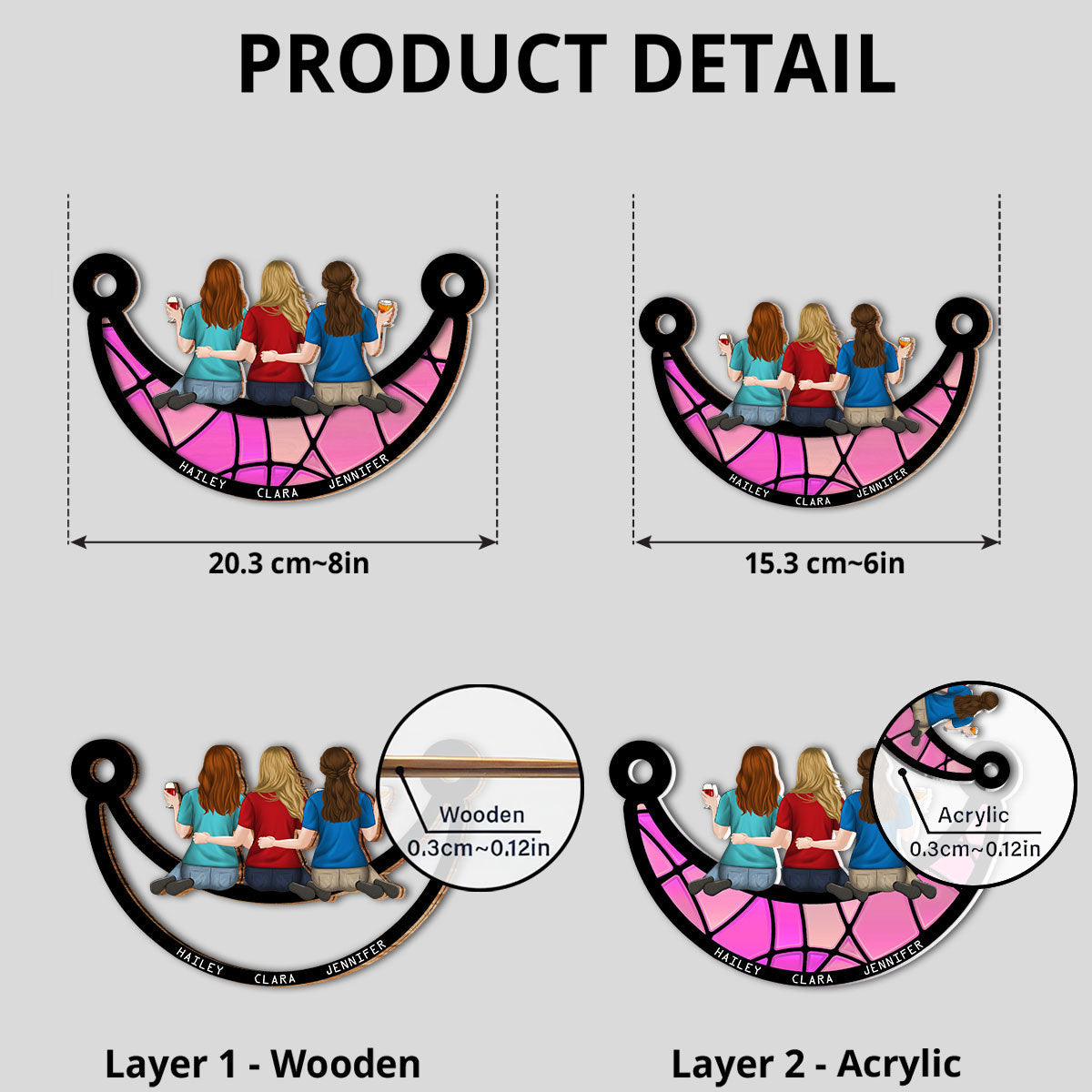 Besties Sitting On The Moon - Personalized Custom Suncatcher