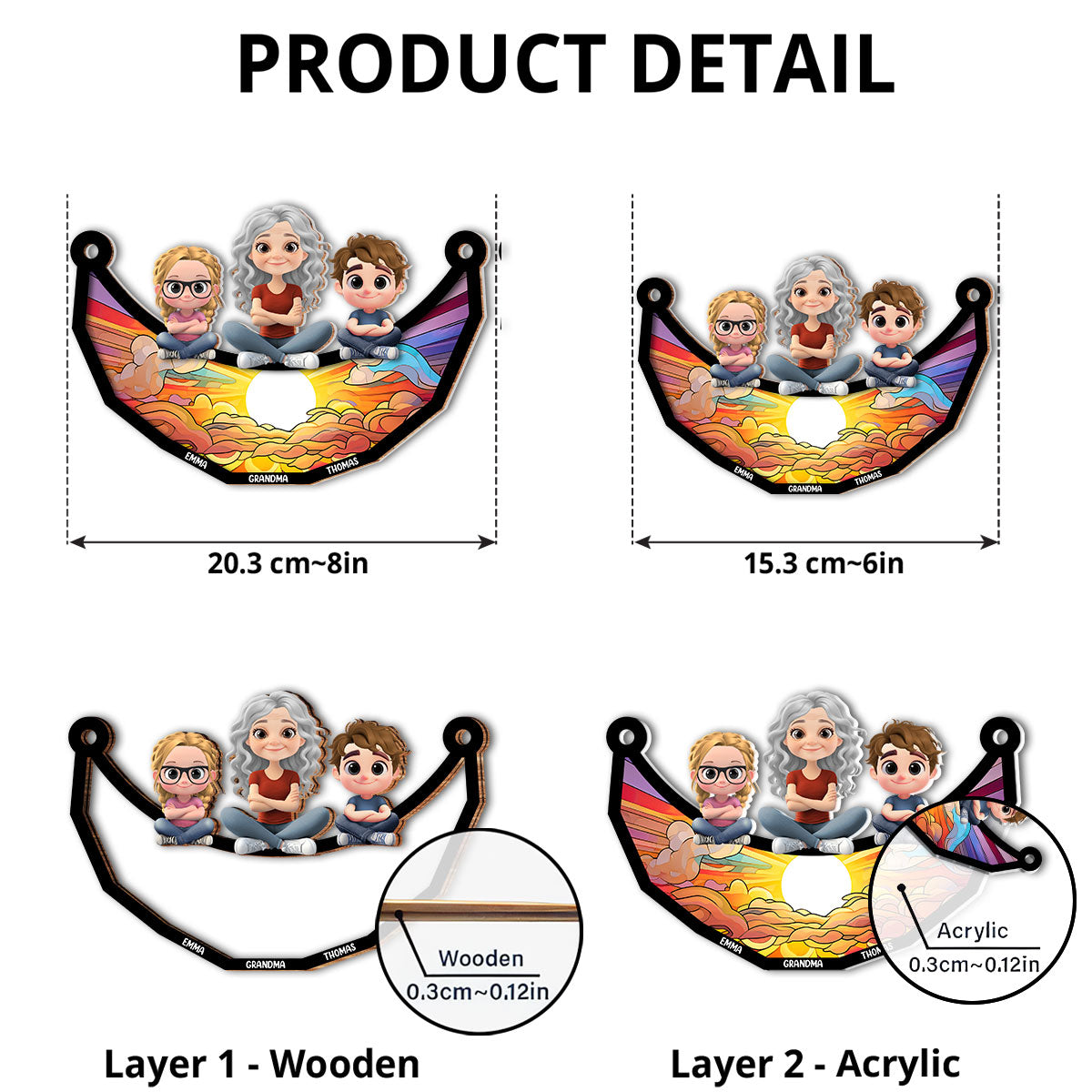 Children Grandma Mom Sitting On The Moon - Personalized Custom Suncatcher