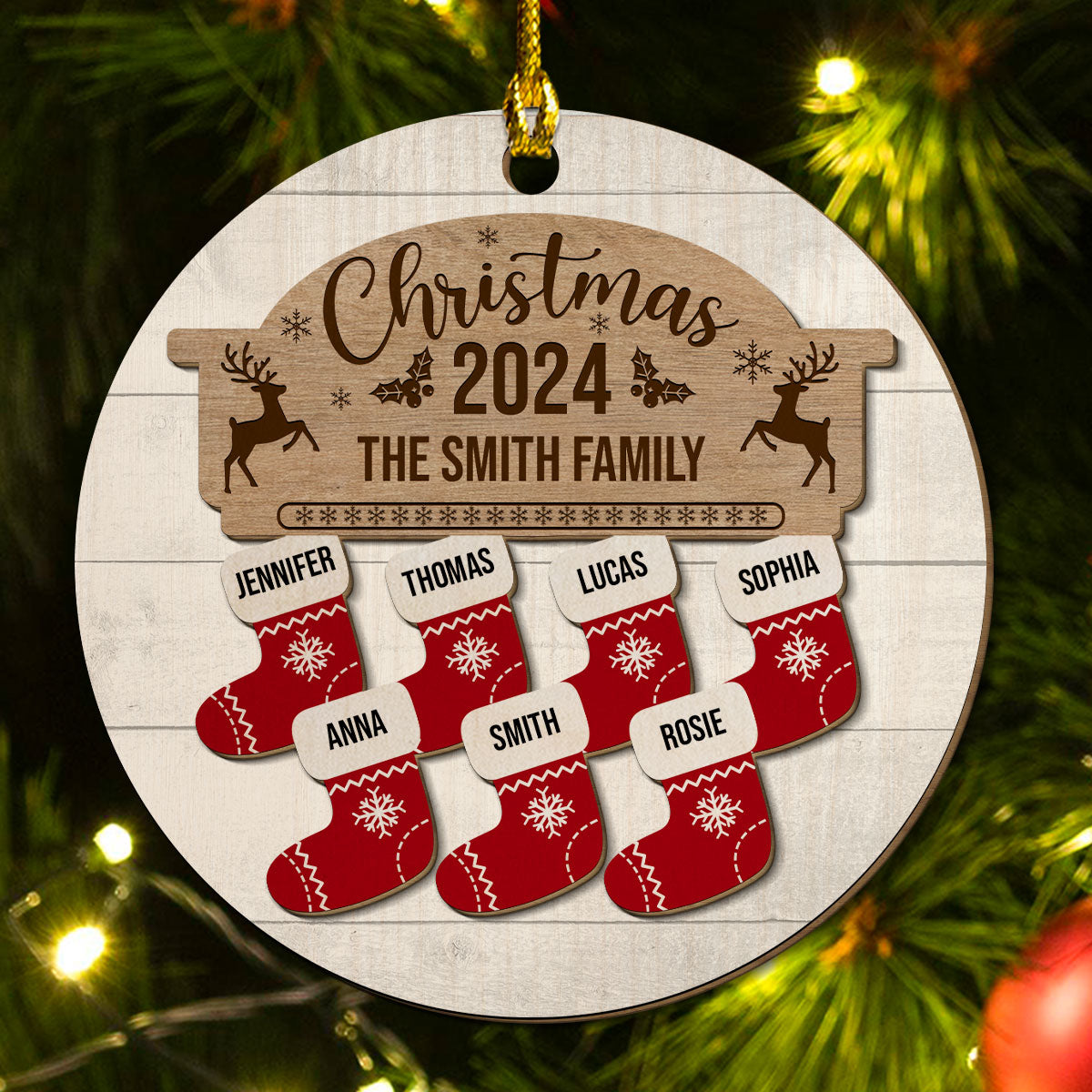 Custom Name Christmas Socks - Personalized Custom 2-layered Wood Ornament
