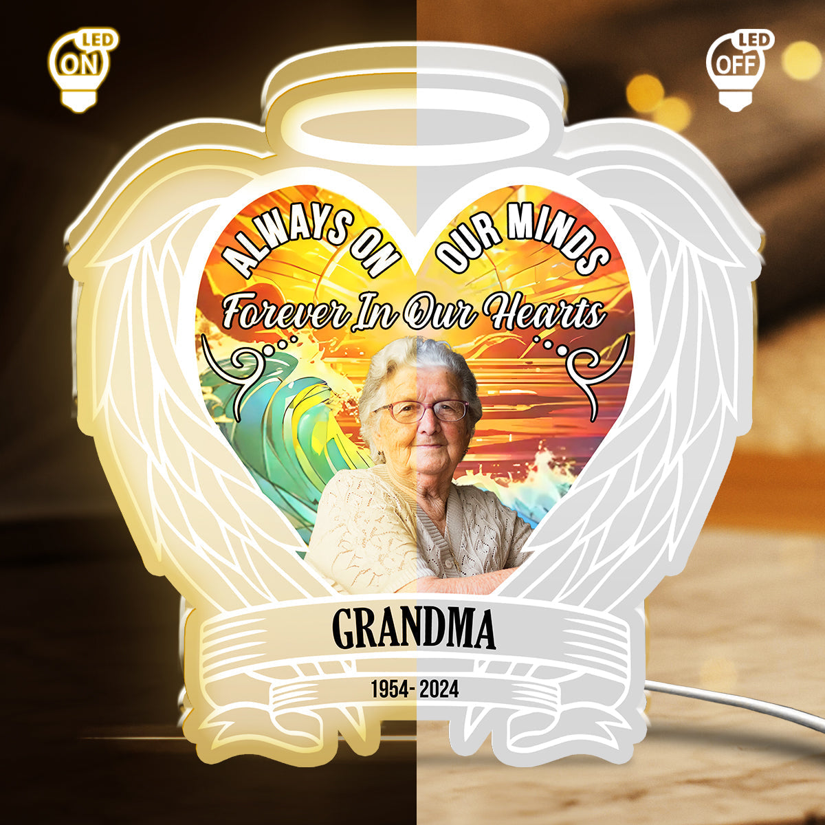 Personalized memorial night light are a beautiful way to commemorate your loved ones who have passed away and keep them close to your heart. Whether you put them on your table. or your desk. these photo night light will remind you of the happy times you shared with your loved one and the joy they brought to your life. Personalized memorial lights are more than just night lights. they are expressions of your love and grief.