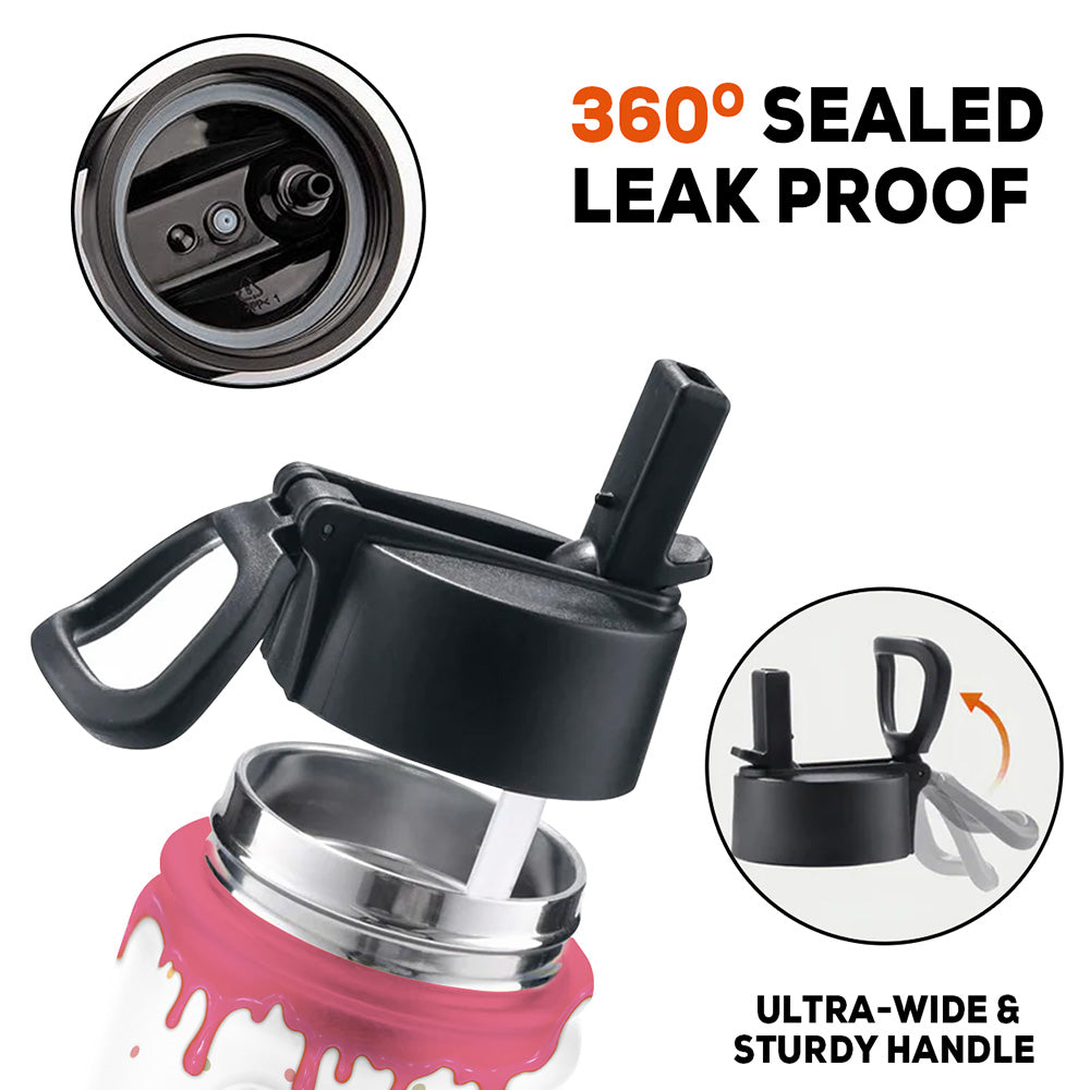 - Features a folding straw lid that is leak-proof when closed securely. The straw allows for one-handed drinking.