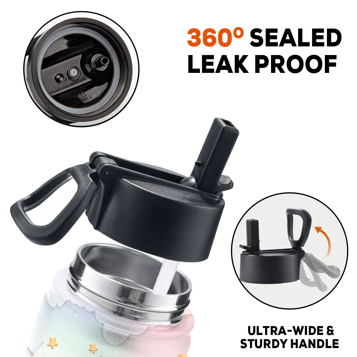 - Features a folding straw lid that is leak-proof when closed securely. The straw allows for one-handed drinking.