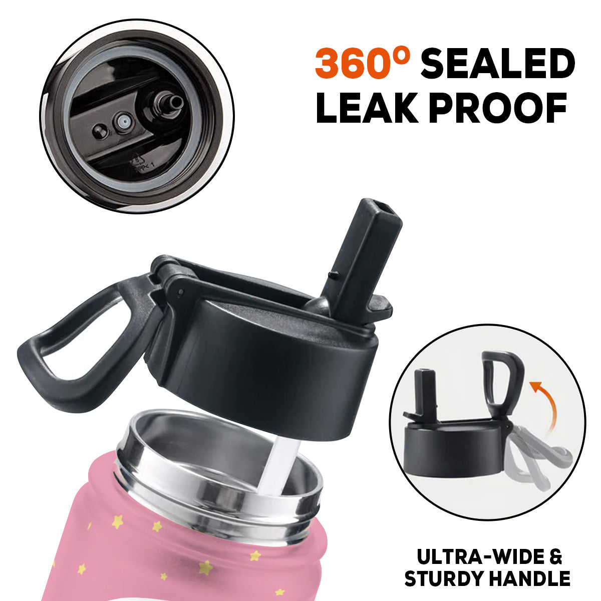 - Features a folding straw lid that is leak-proof when closed securely. The straw allows for one-handed drinking.