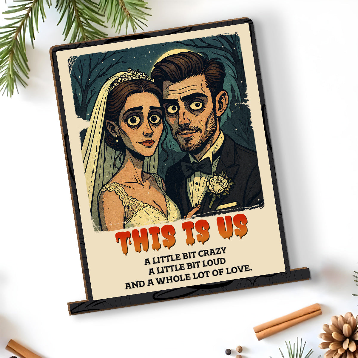 Family A Little Bit Crazy - Personalized Custom 2-Layer Wood Plaque With Flat Base