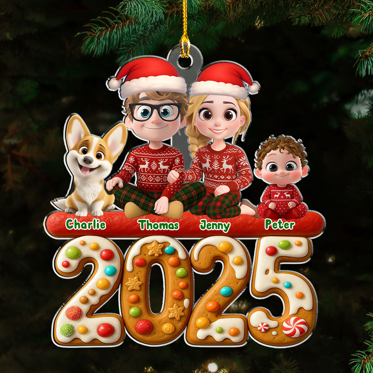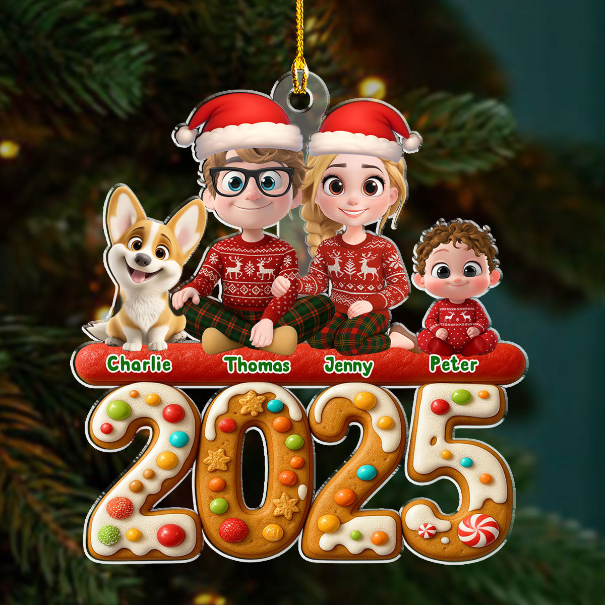 Family And Dog Cake - Personalized Custom Acrylic Ornament