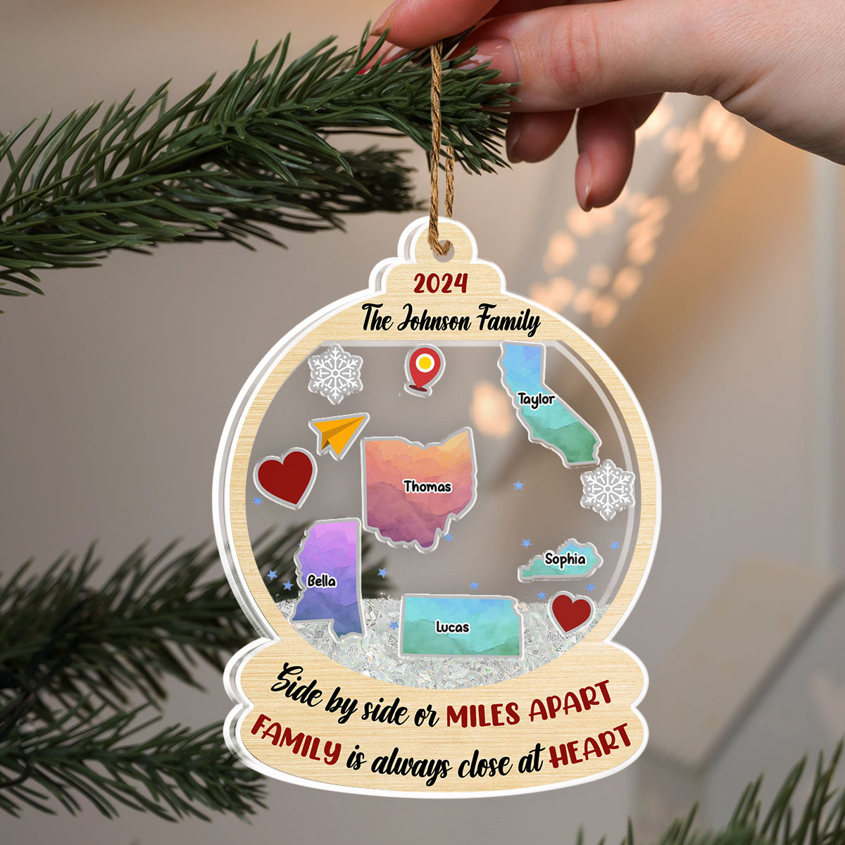 Family Is Always Close At Heart - Personalized Custom Acrylic Shaker Ornament
