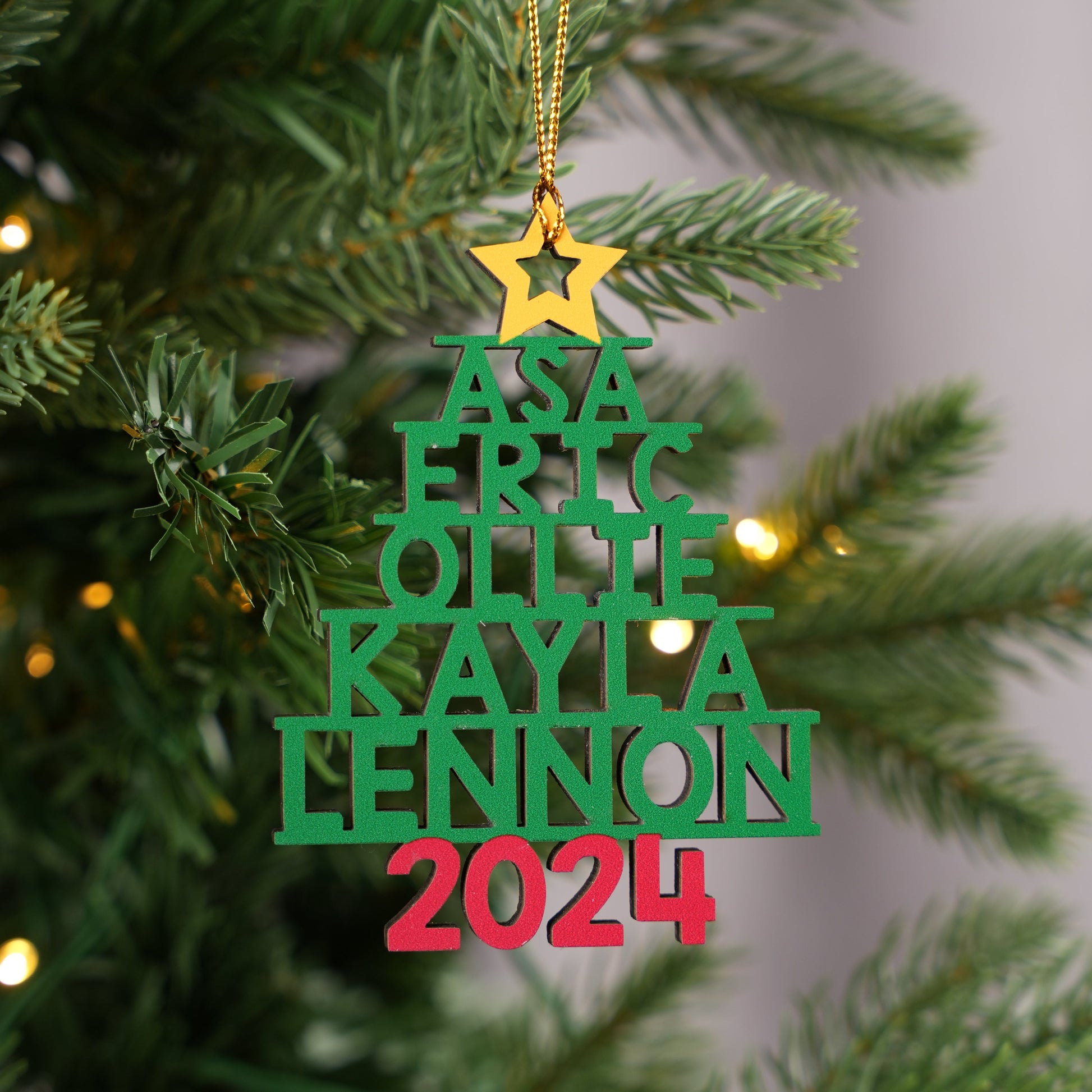 Family Names Christmas Tree - Personalized Custom 1-layered Wood Ornament