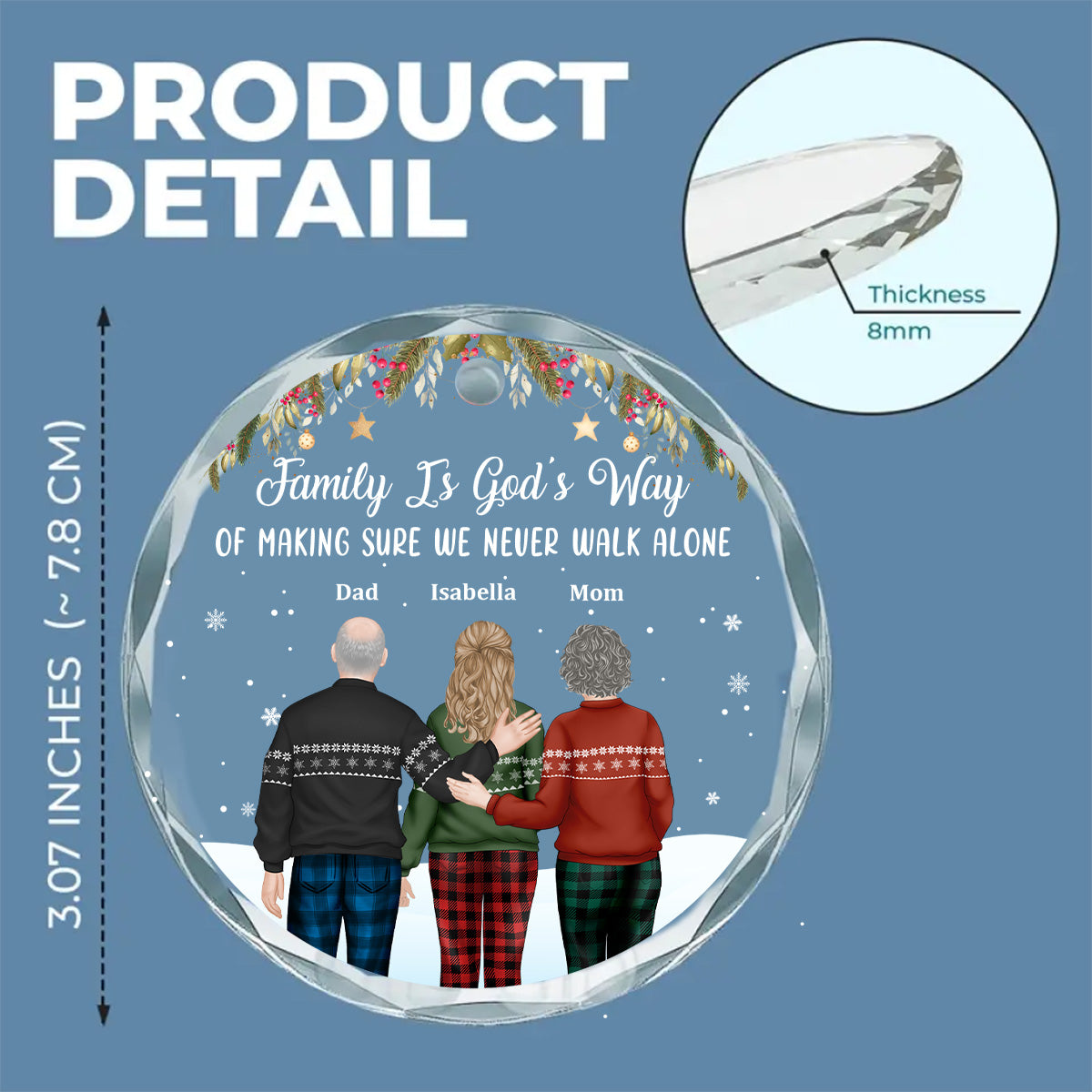 Family Never Walk Alone - Personalized Custom Glass Ornament