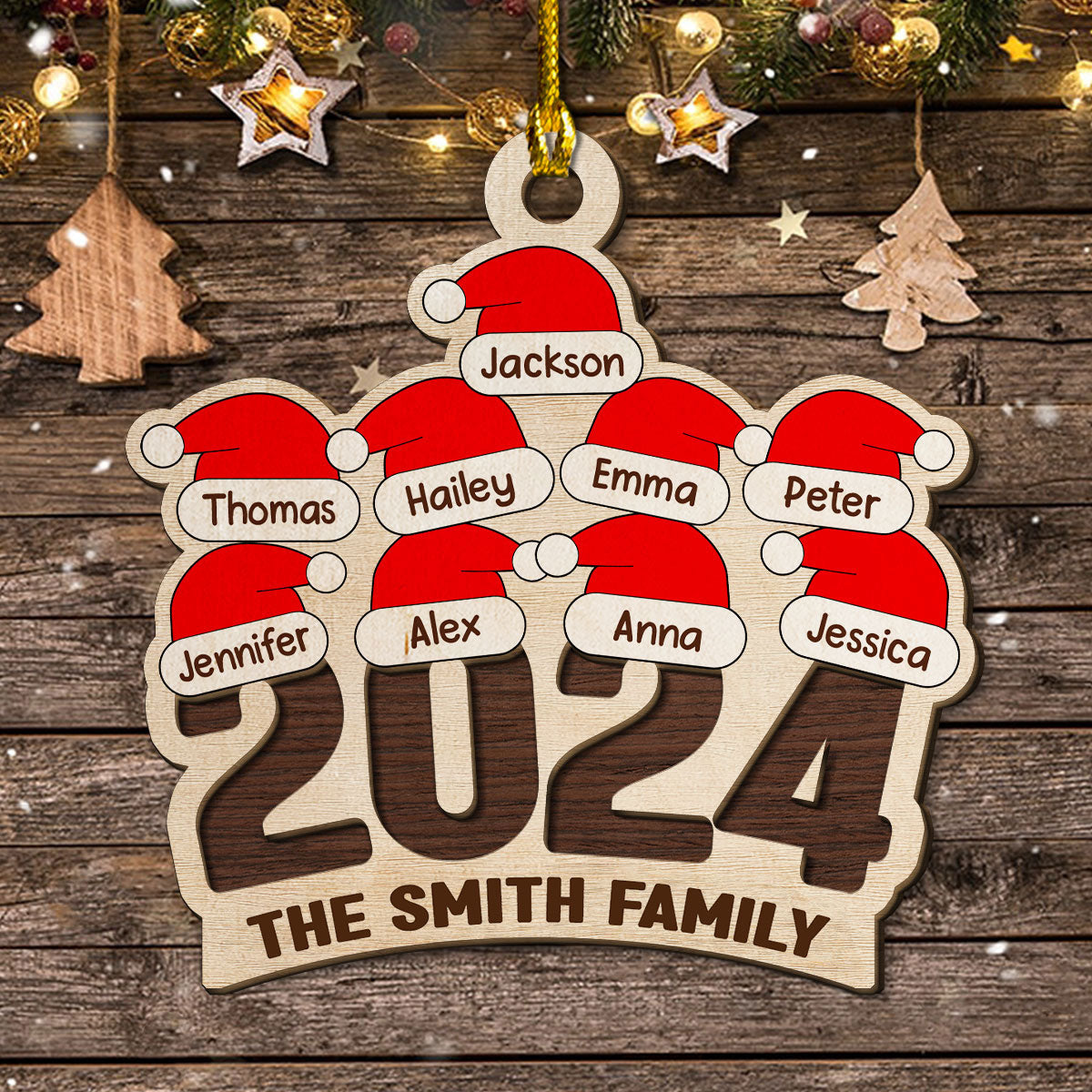 Family Santa Hat - Personalized Custom 2-Layered Wood Ornament