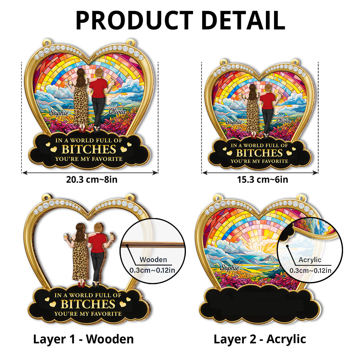 - The front of this suncatcher is made from premium natural wood and mounted on acrylic plexiglass.