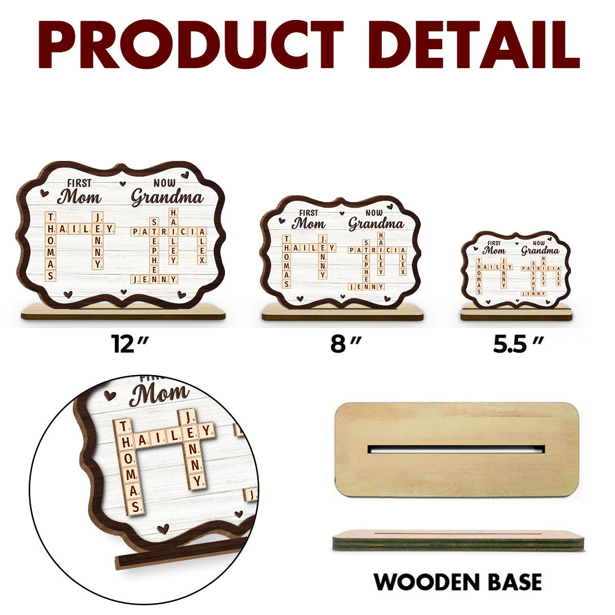 First Mom Now Grandma Crossword - Personalized Custom 2-Layer Wood Plaque With Flat Base