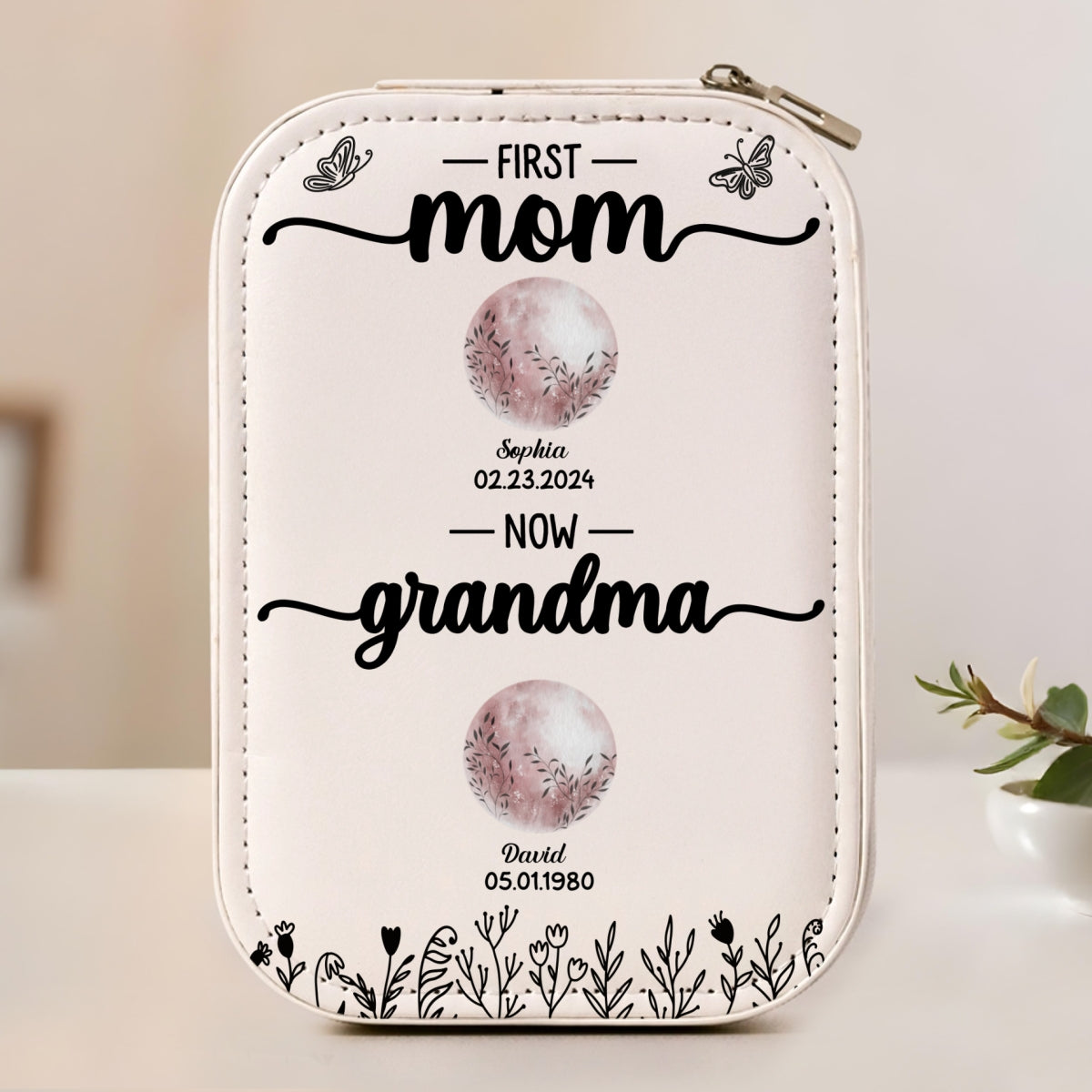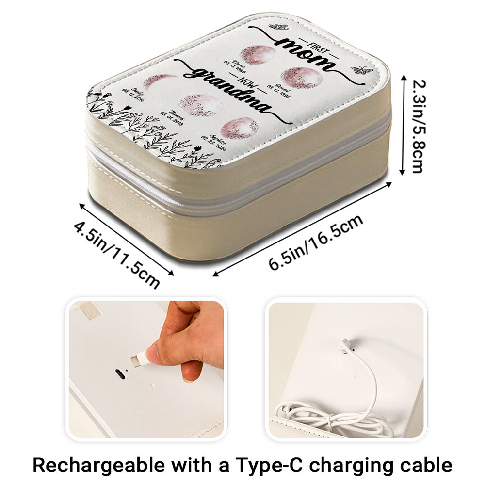 First Mom Now Grandma Floral Birth Moon - Personalized Custom Jewelry Box With LED Mirror