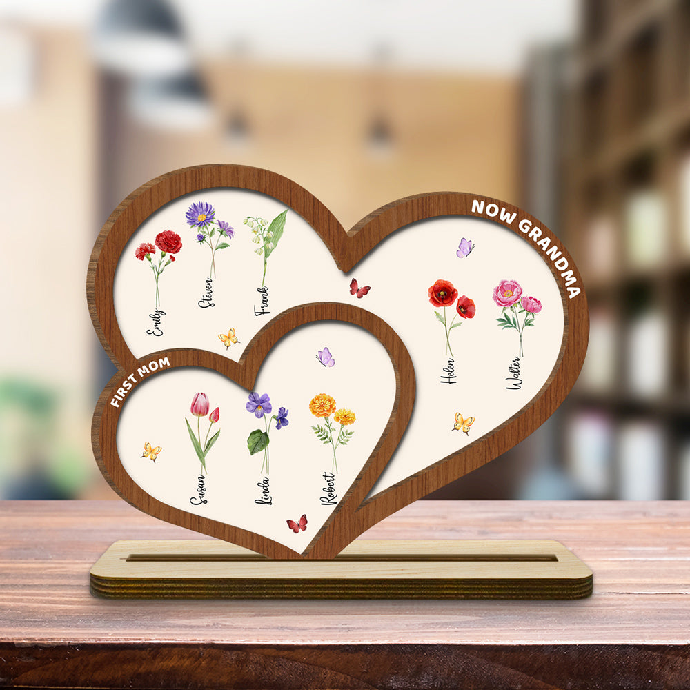 First Mom Now Grandma - Personalized Custom 2-Layer Wood Plaque With Flat Base