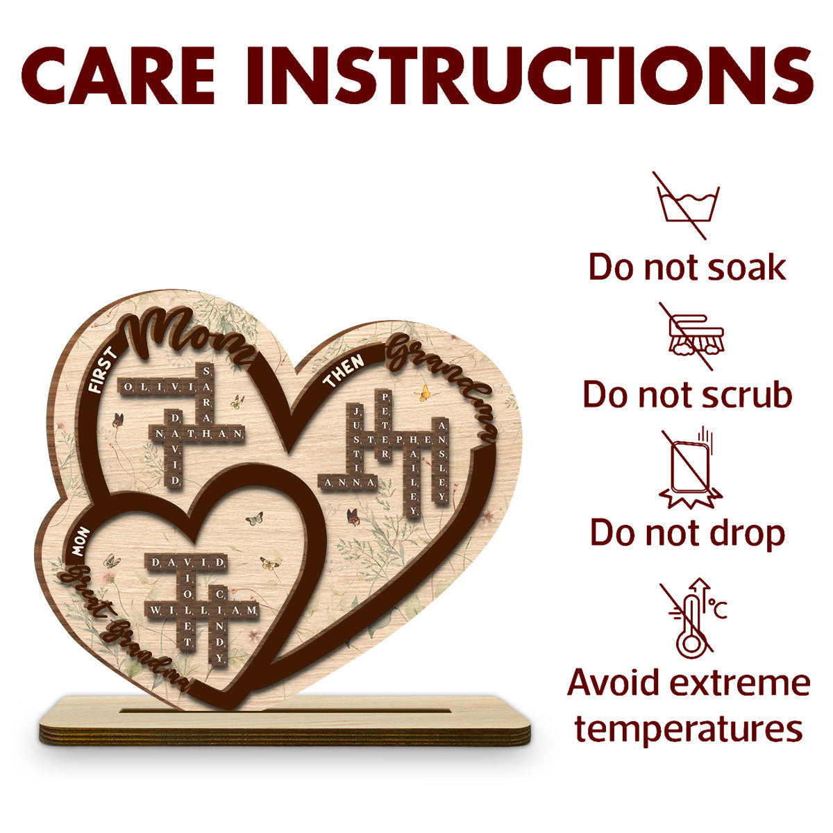 First Mom Now Grandma - Personalized Custom 2-Layer Wood Plaque With Flat Base