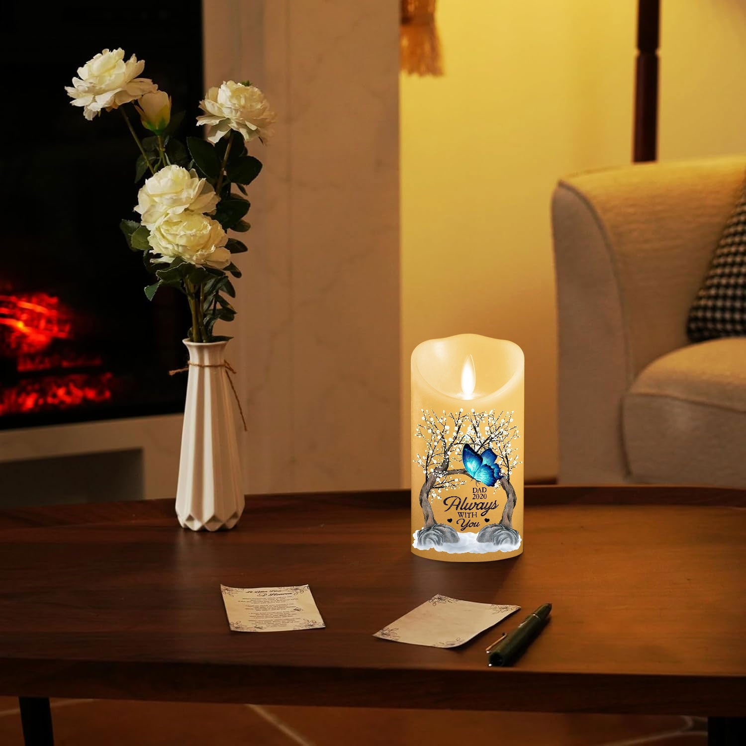 Illuminate the memory of your loved one with our LED memorial candle. With a gentle flickering light. it brings a sense of warmth and peace to any space. No more worrying about open flames or messy wax. this elegant candle is a beautiful and safe way to honor your loved one.