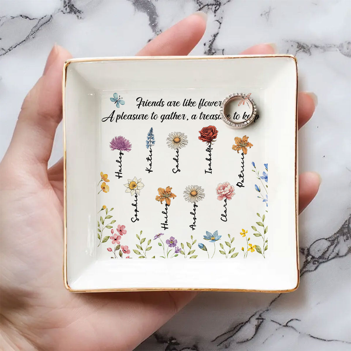 Friends Are Like Flowers - Personalized Custom Jewelry Dish