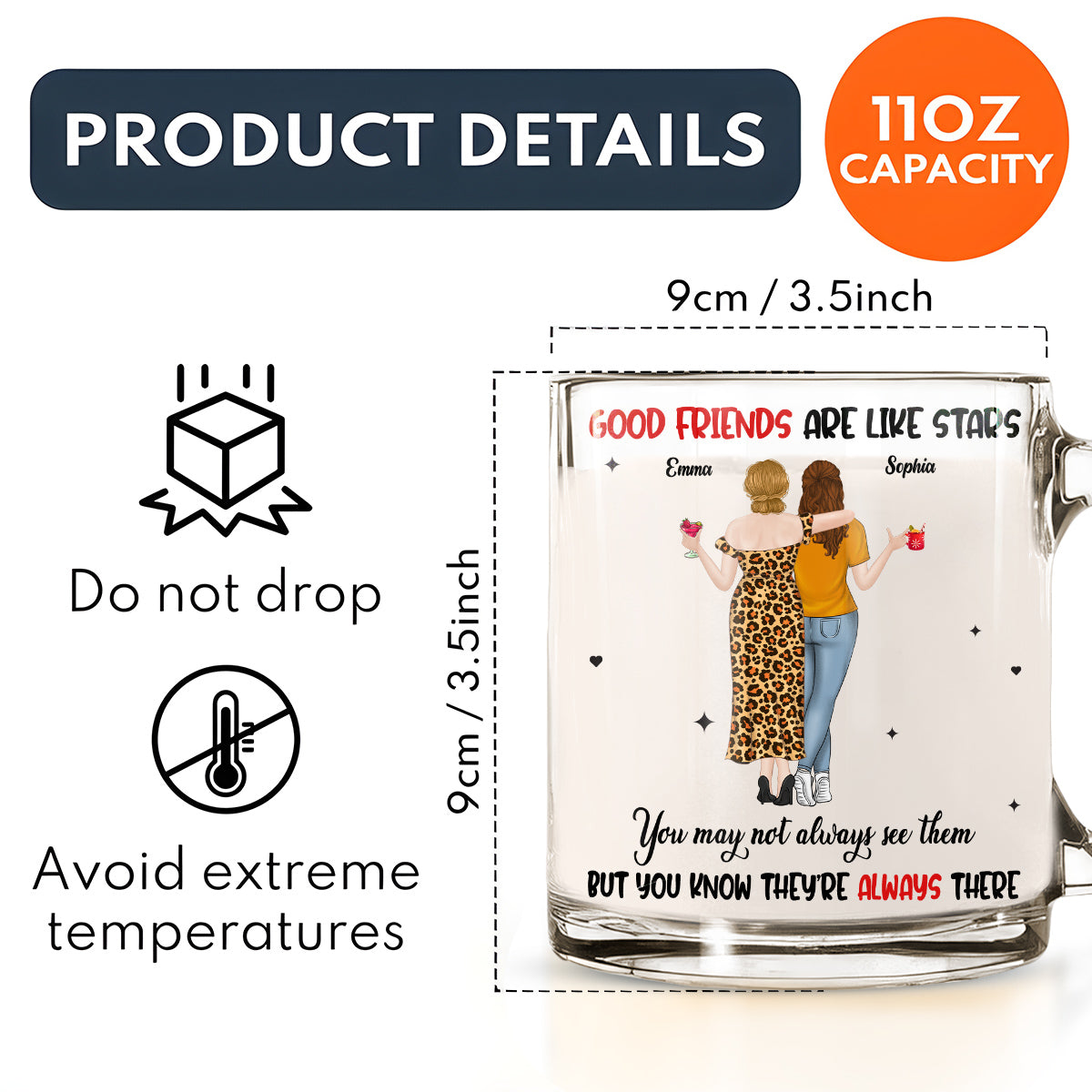 Friends Like Stars - Personalized Custom Glass Mug