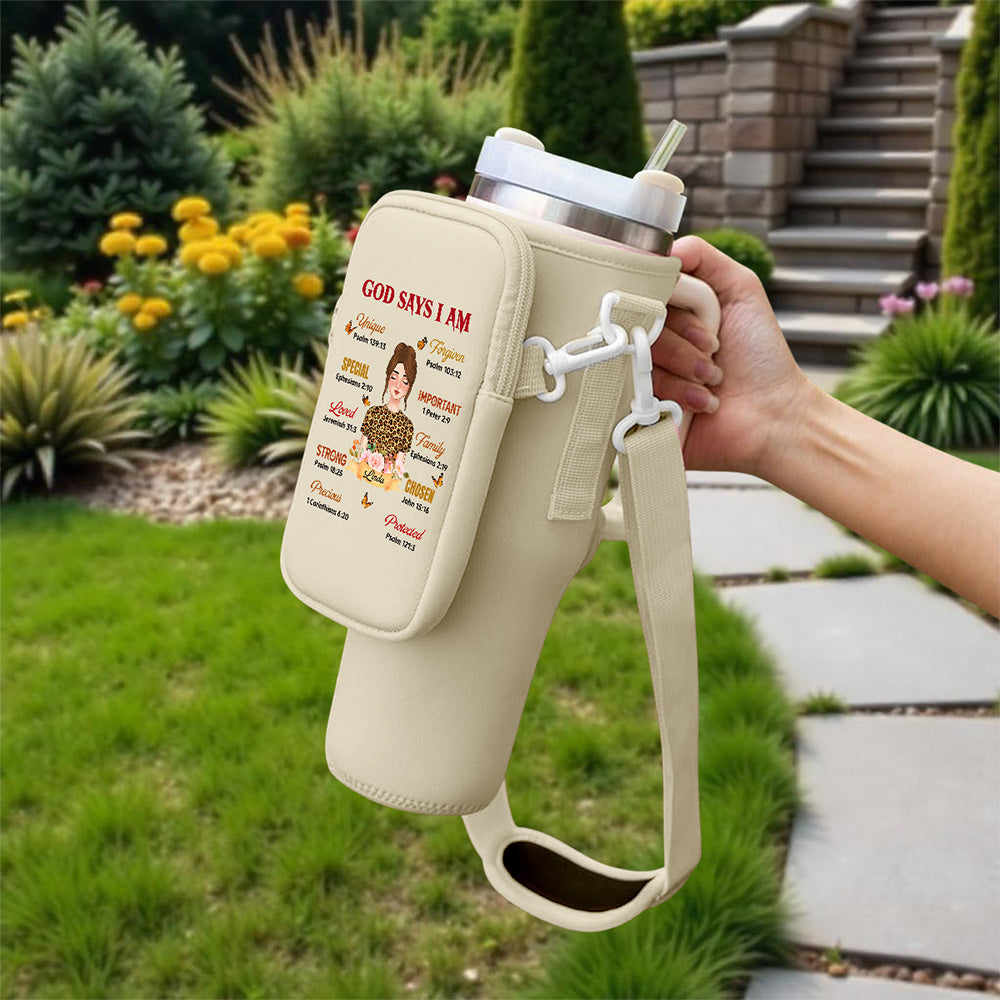 God Says I Am - Personalized Custom 40oz Water Bottle Carrier Bag