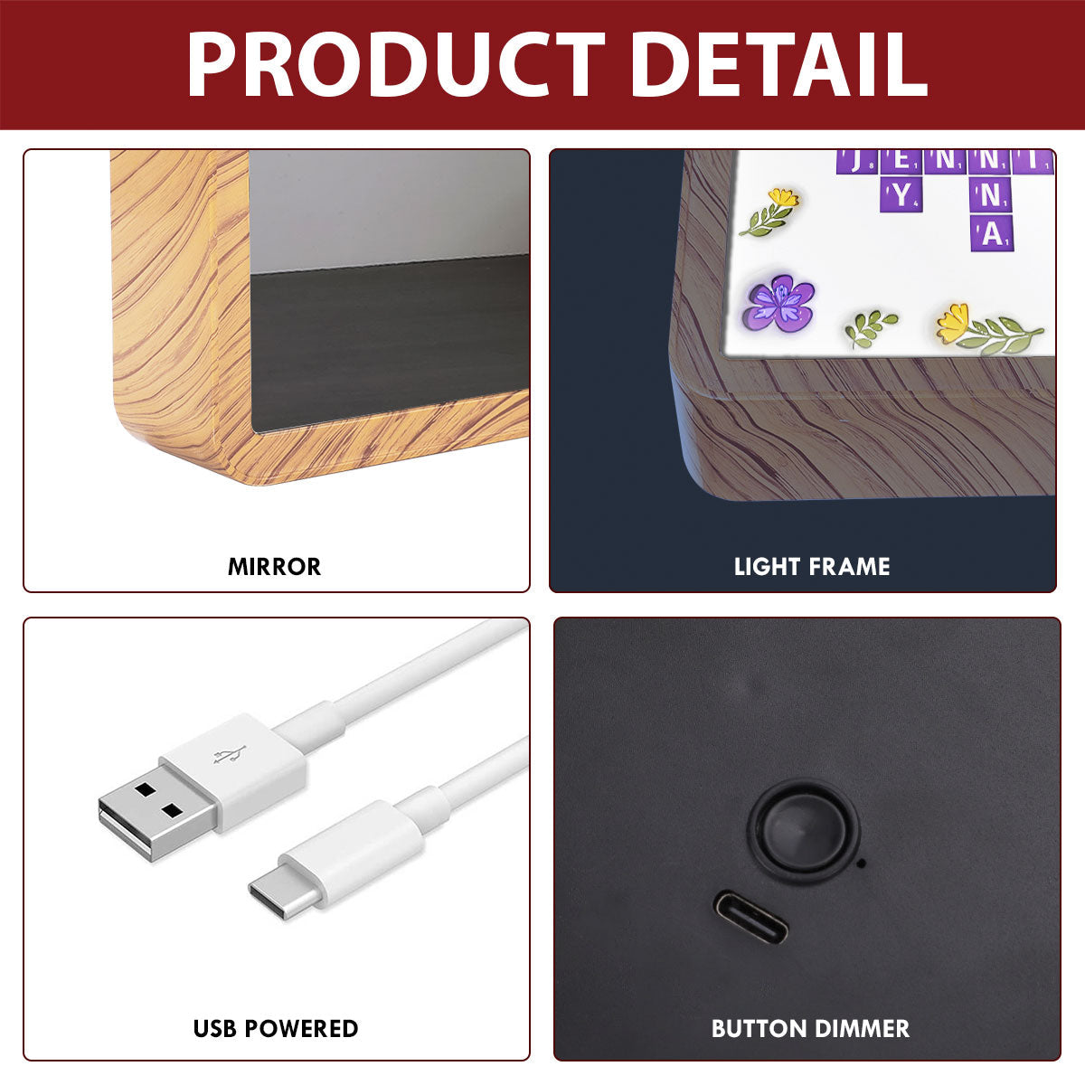 Indulge in the enigmatic allure of our multi-functional mirror. The elegant magic mirror not only functions as a normal mirror. but also reveals a hidden. sentimental message when the light is turned on. A perfect meaningful and surprising gift for your beloved ones.