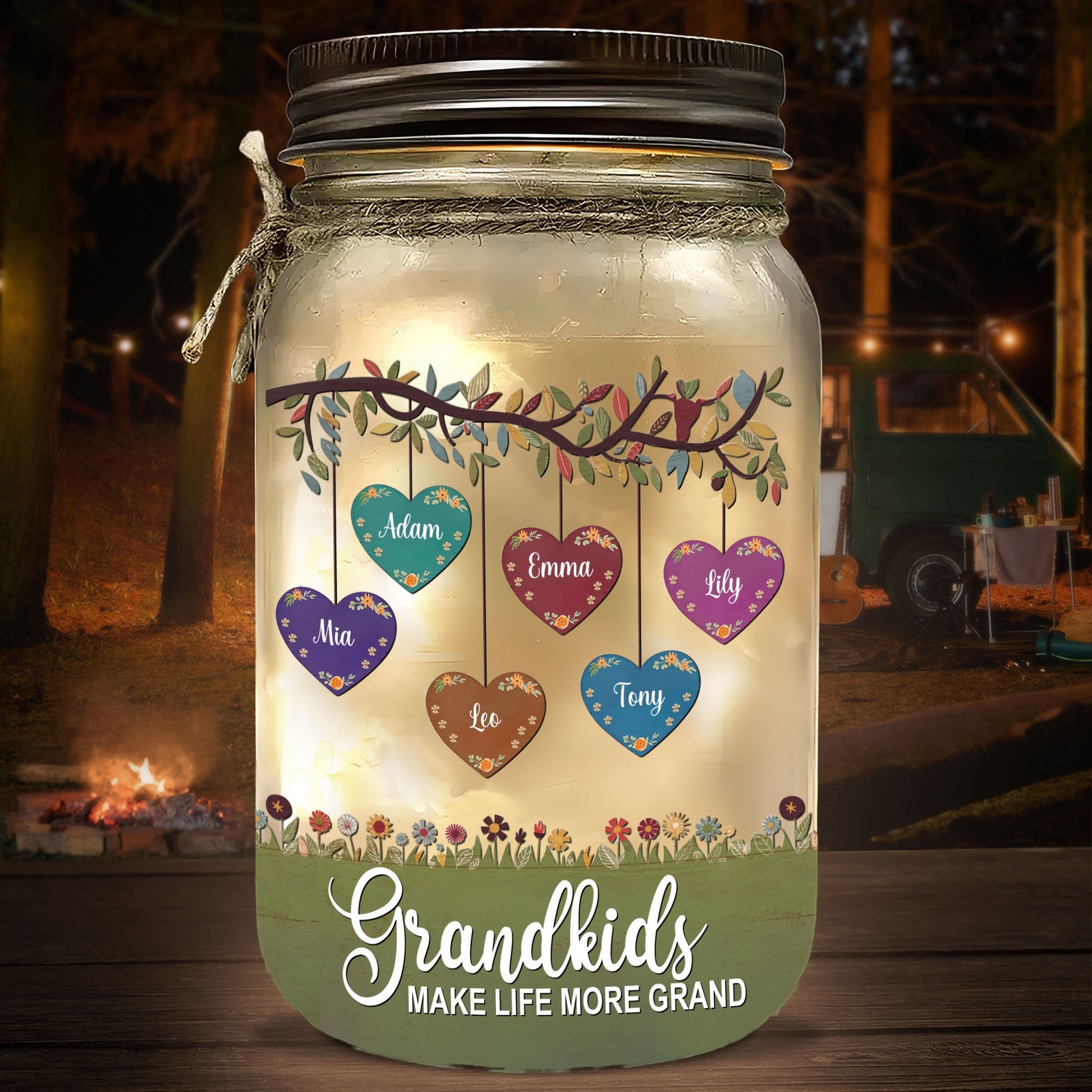 Grandkids Make Life More Grand - Personalized Custom Mason Jar Light