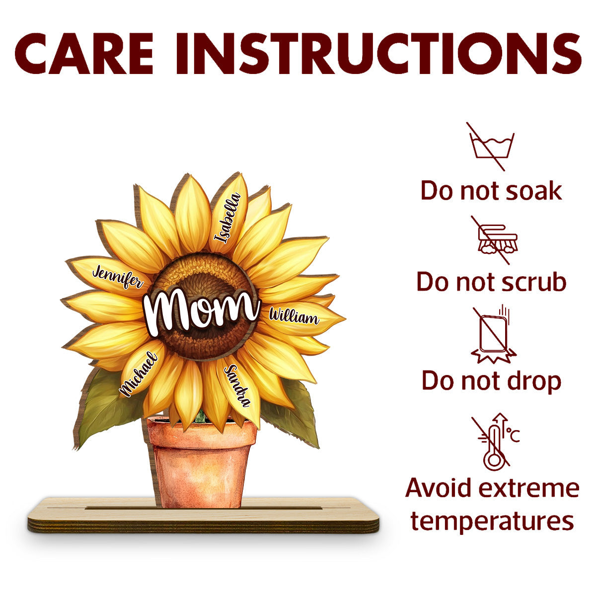 Grandma Sunflower - Personalized Custom 2-Layer Wood Plaque With Flat Base