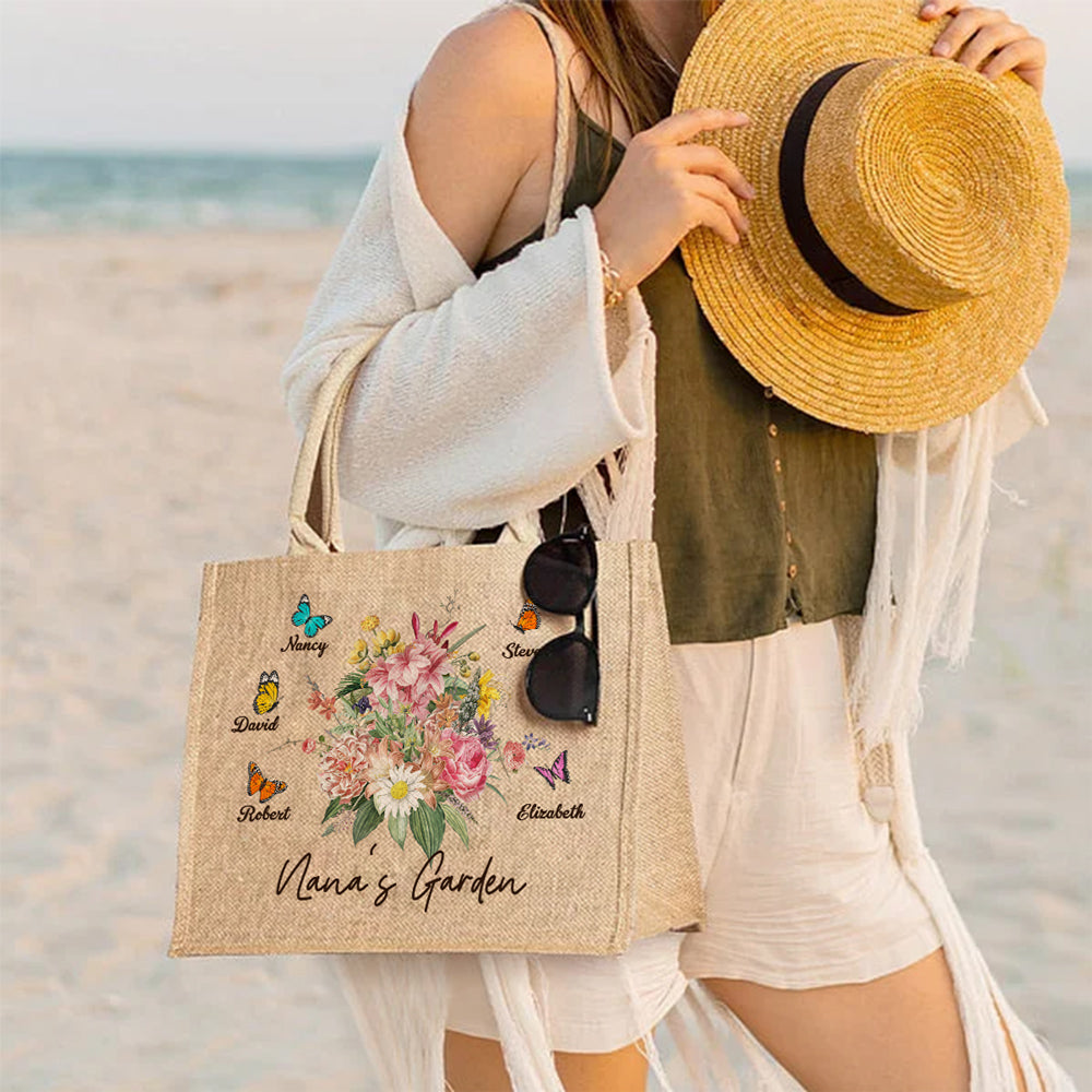 Grandmas Garden - Personalized Custom Jute Tote Bag