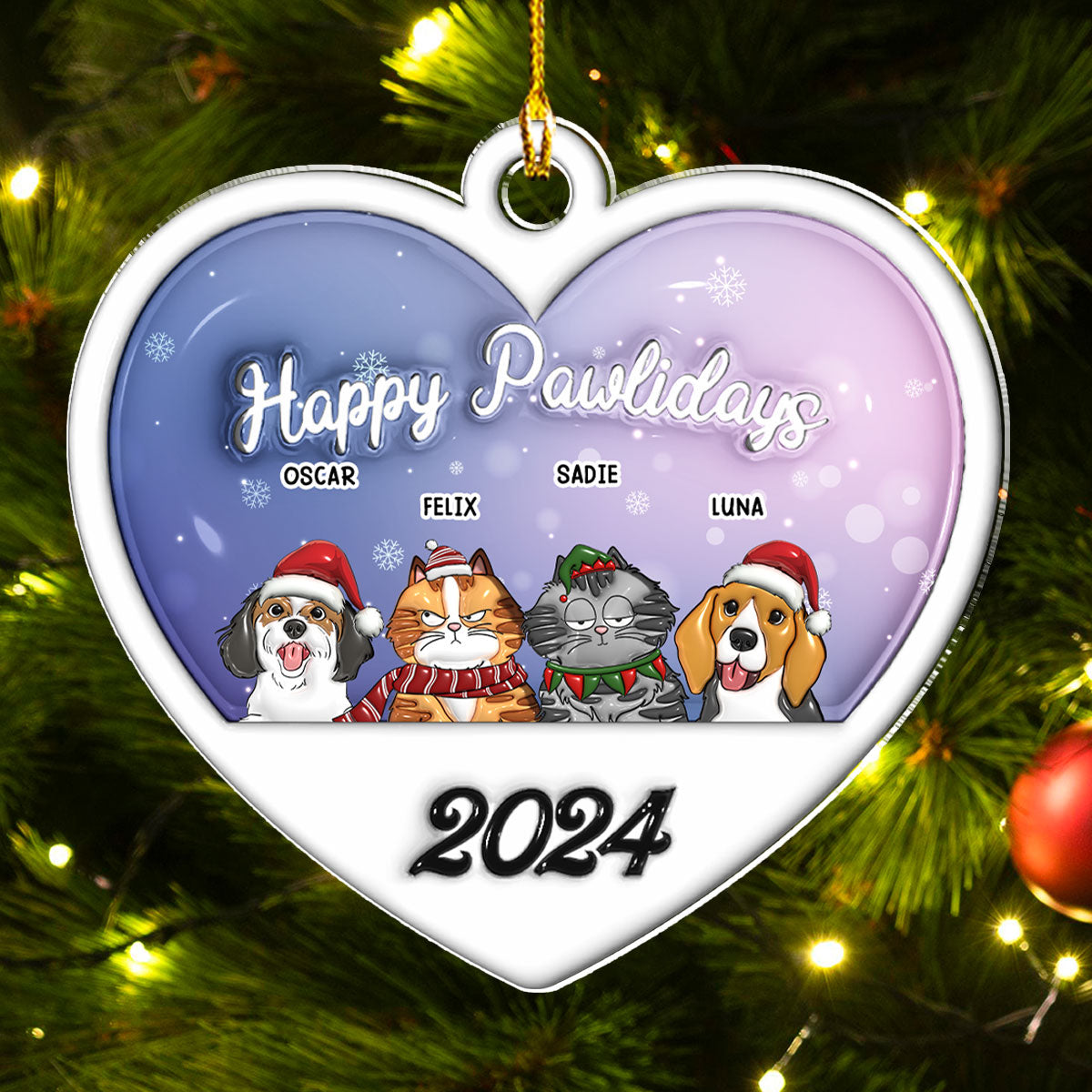 Happy Pawlidays 2024 - Personalized Custom 3D Inflated Effect Acrylic Ornament