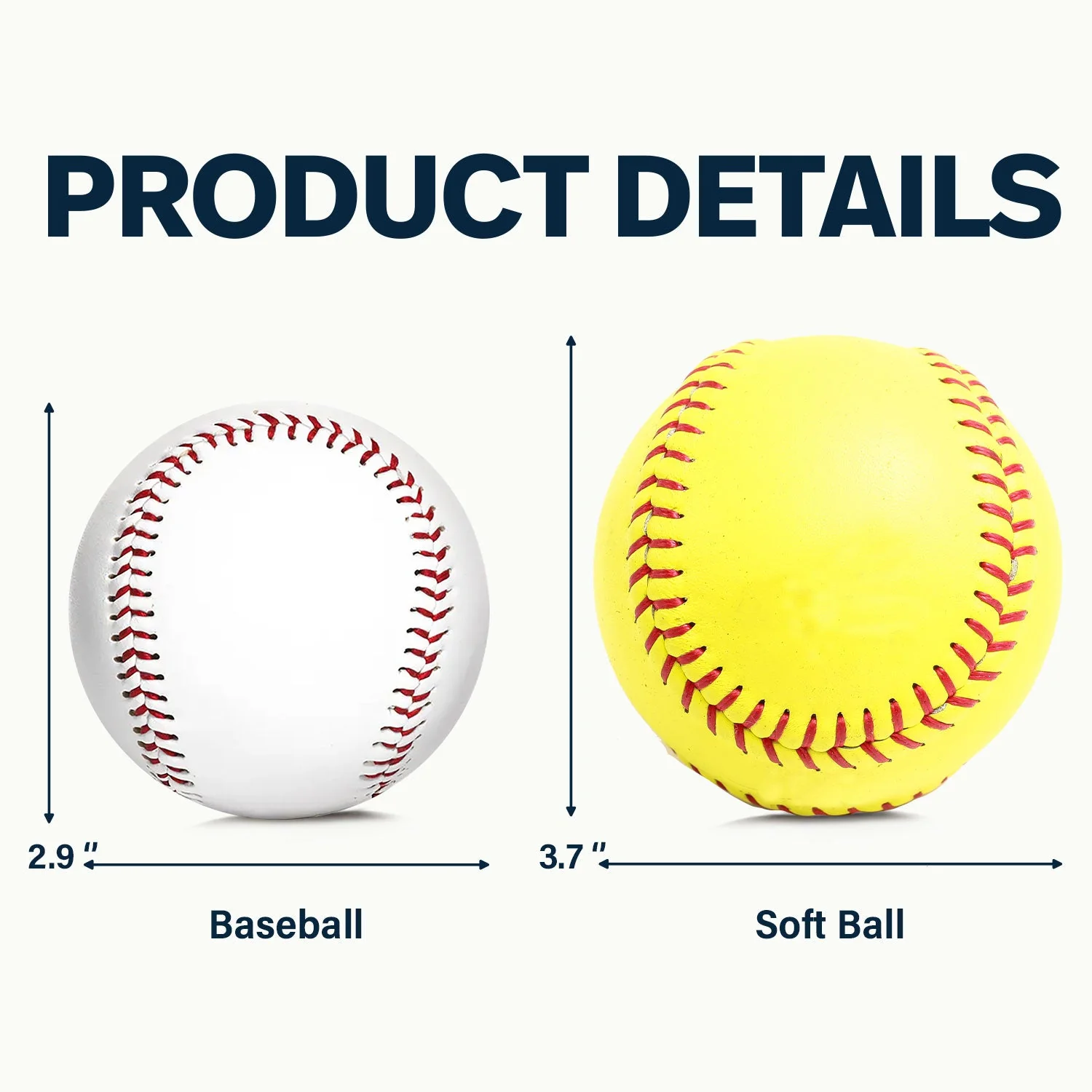 - Softball: Diameter=3.7 inches (~ 9.5 cm). weight=180g.