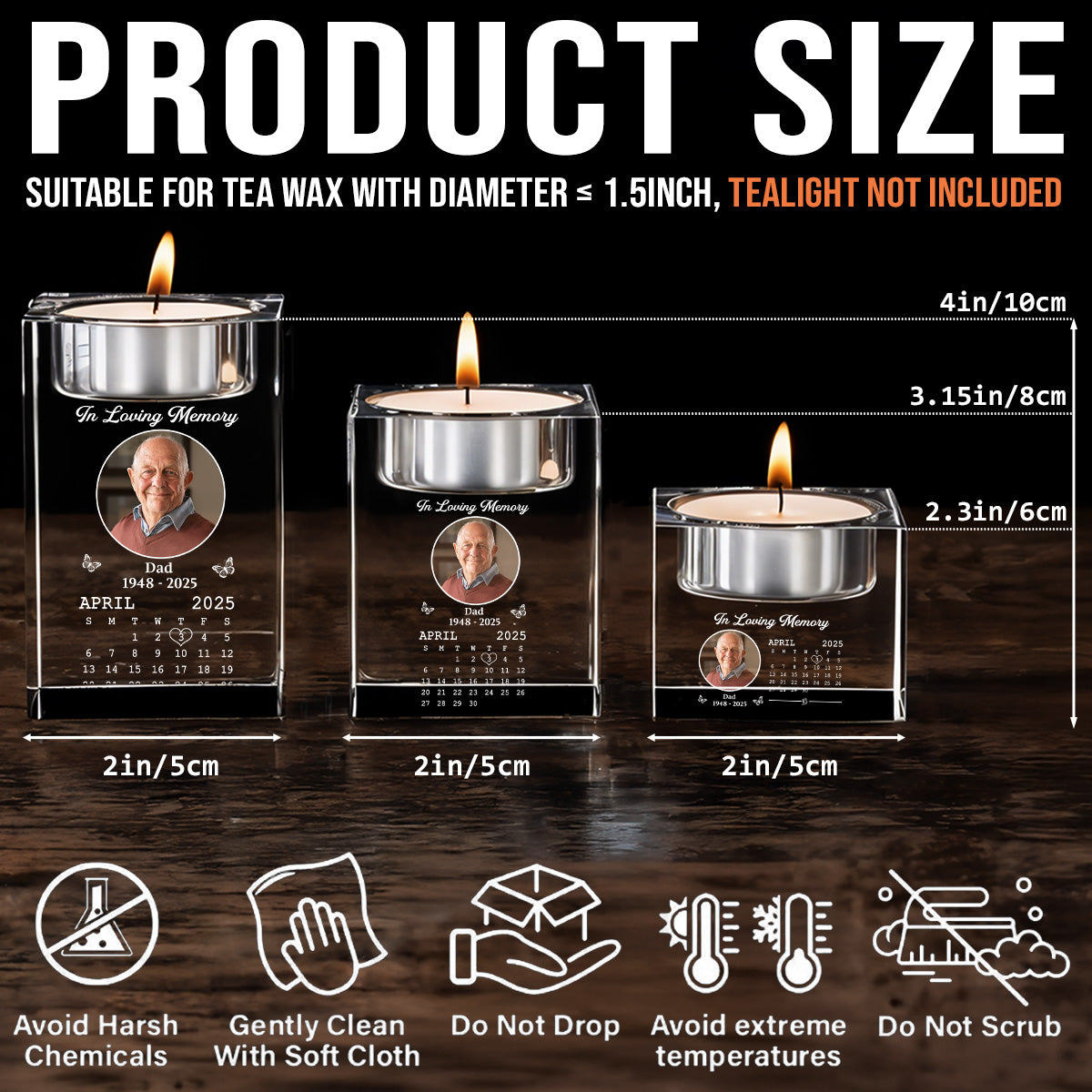 In My Memory - Personalized Custom Crystal Candle Holder