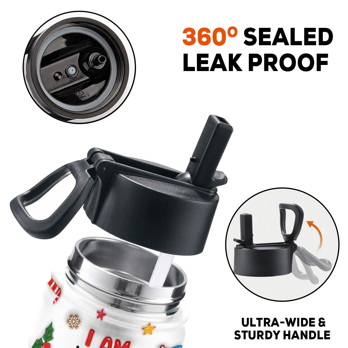 Kind Smart Loved Christmas - Personalized Custom 3D Inflated Effect Kids Water Bottle