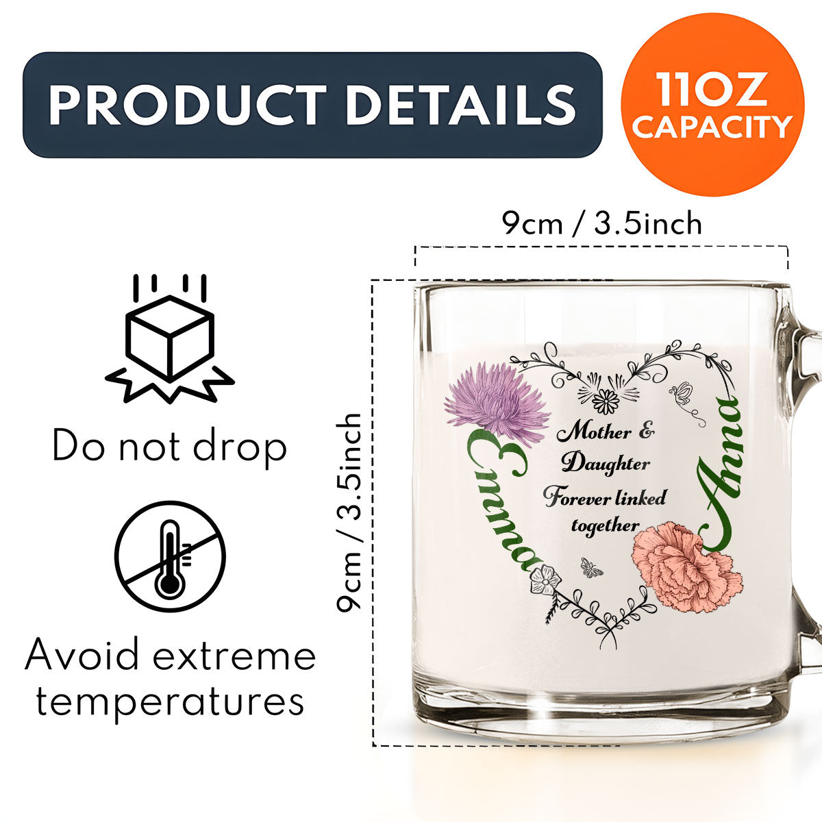 Linked Together Mom And Daughter - Personalized Custom Glass Mug