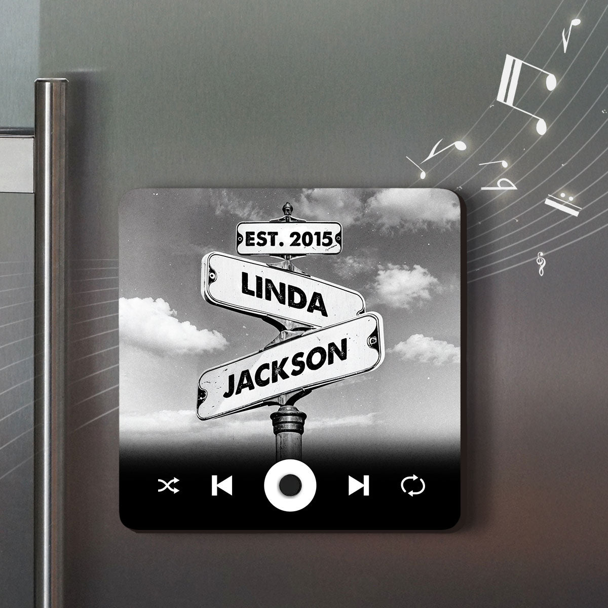This personalized keepsake merges music with treasured memories. perfect for decorating your fridge or any metallic surface.