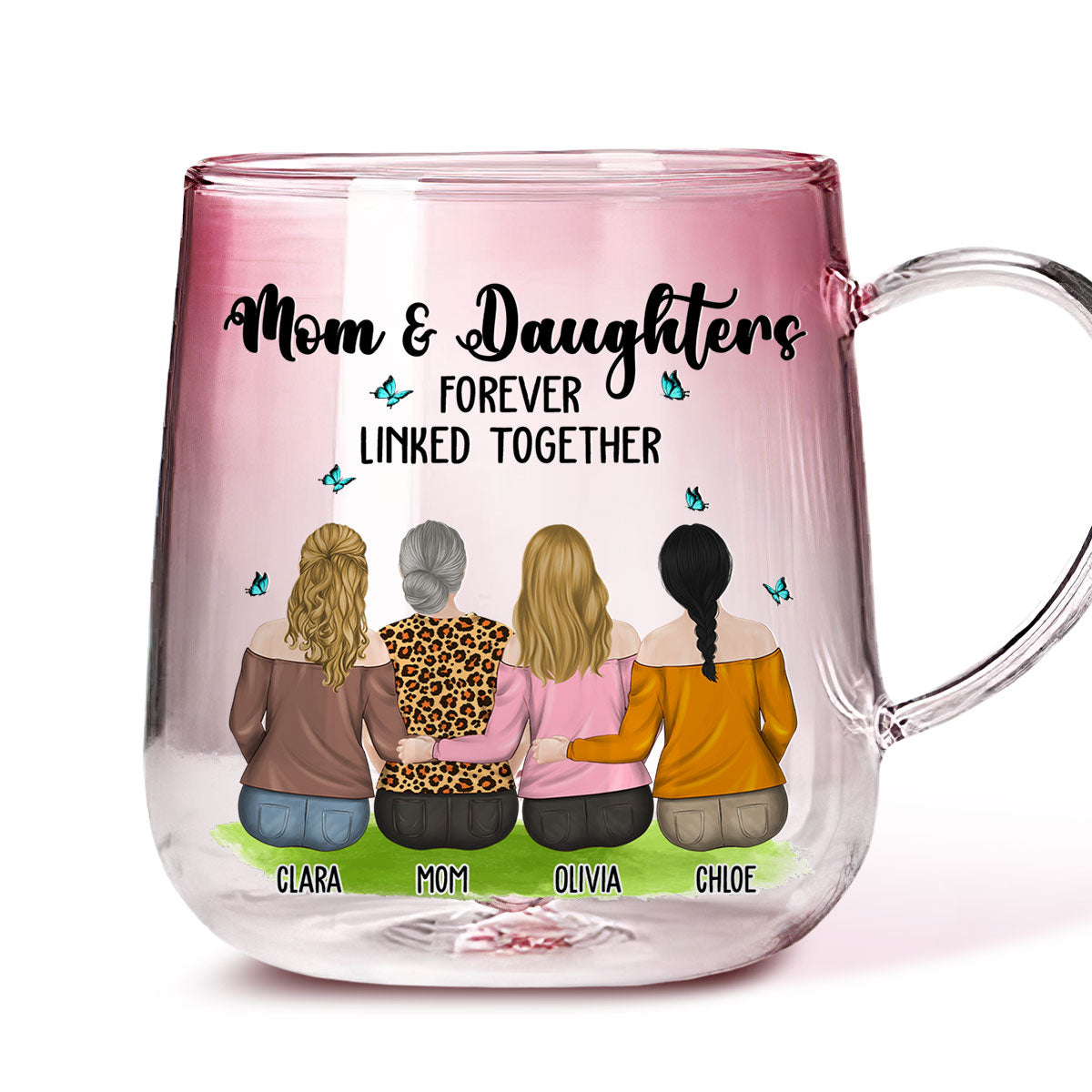 Mom And Daughter Connected by Love - Personalized Custom Pink Gradient Glass Mug