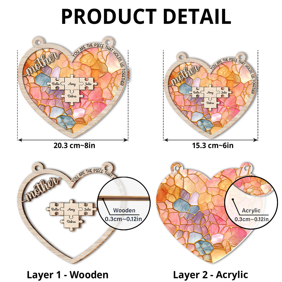 - The front of this suncatcher is made from premium natural wood and mounted on acrylic plexiglass.