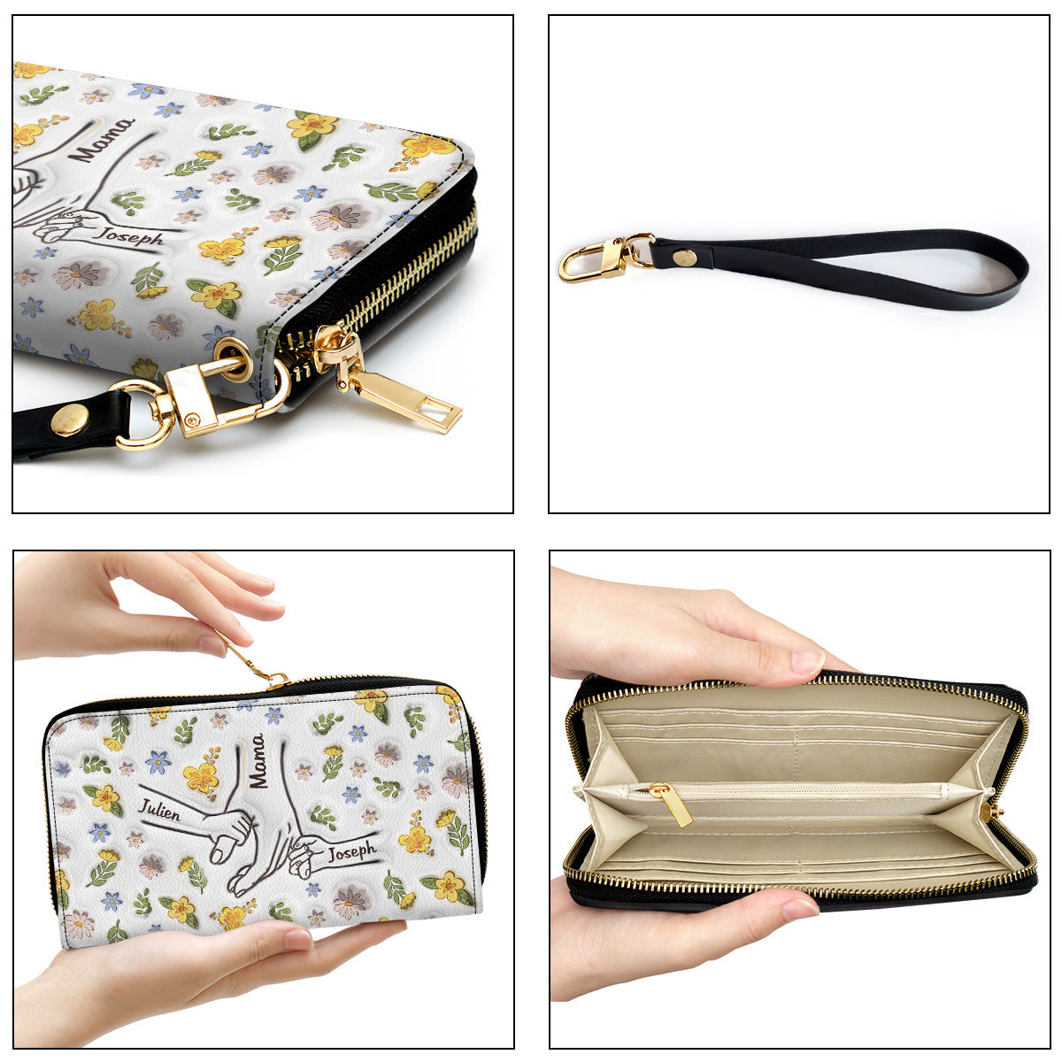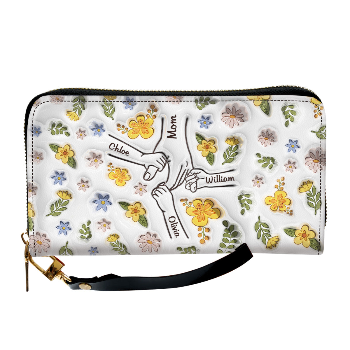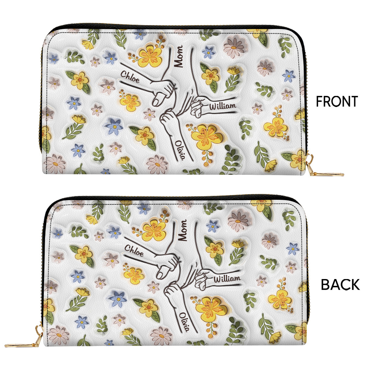 Mom Hold Kid Hand - Personalized Custom 3D Inflated Effect Leather Wallet