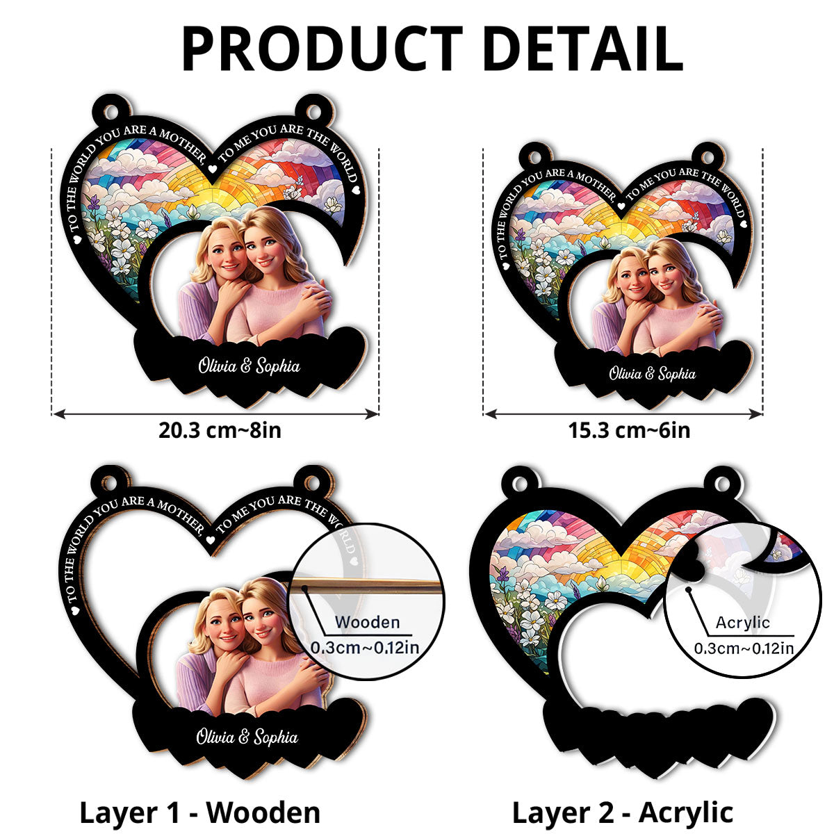 - The front of this suncatcher is made from premium natural wood and mounted on acrylic plexiglass.