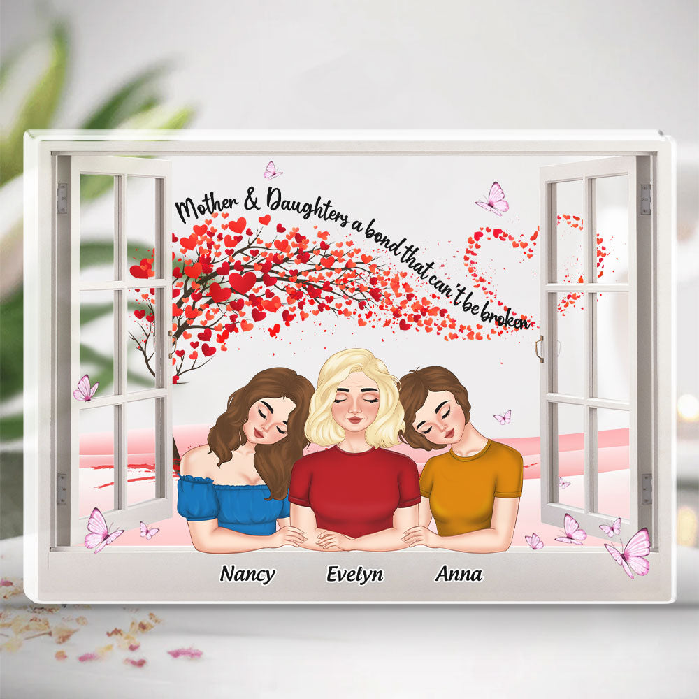 Mother Daughters And Red Heart - Personalized Custom Acrylic Plaque