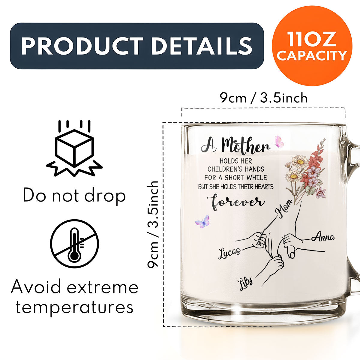 Mother Holds Her Children Heart Forever - Personalized Custom Glass Mug