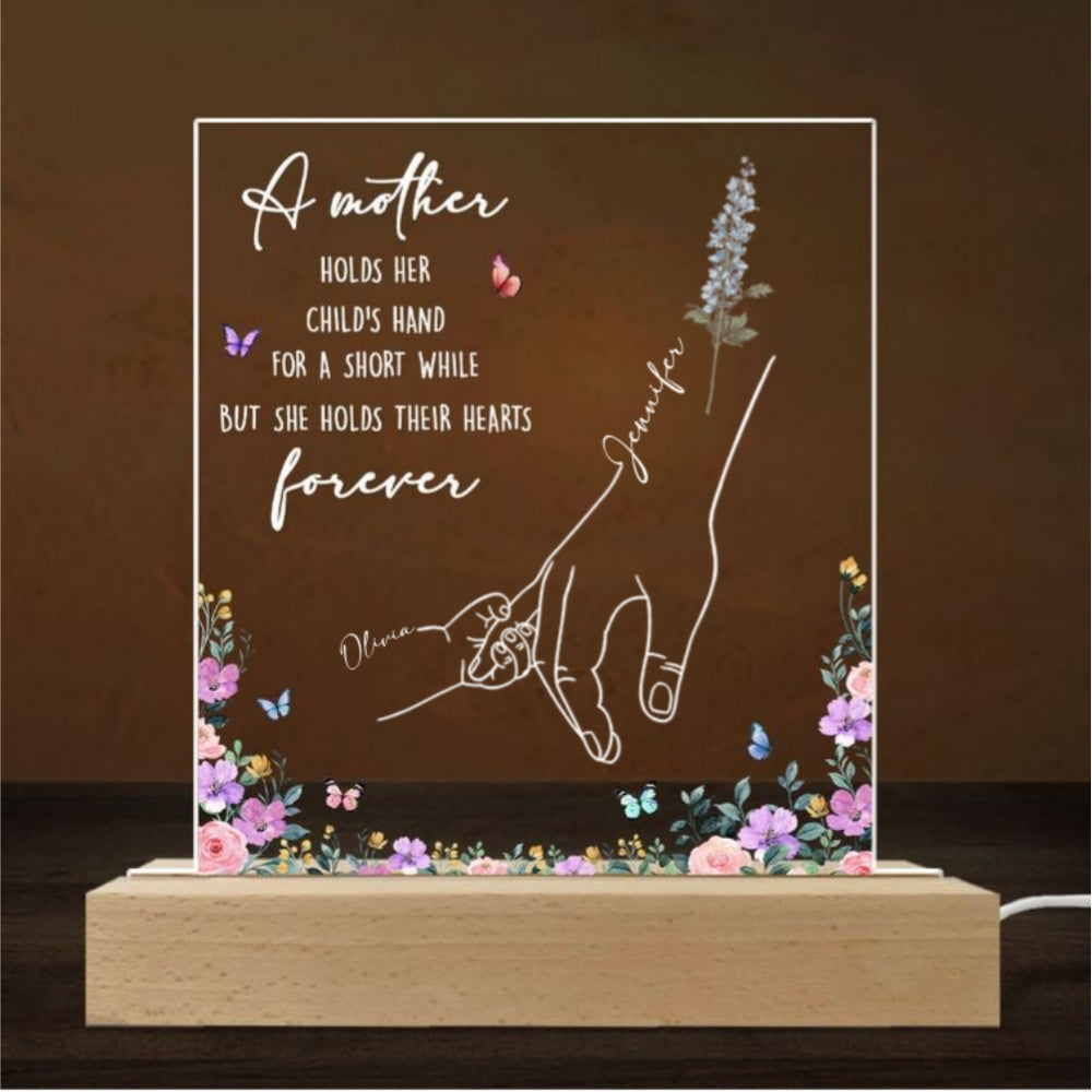 Mother Holds Her Children Heart Forever - Personalized Custom LED Light