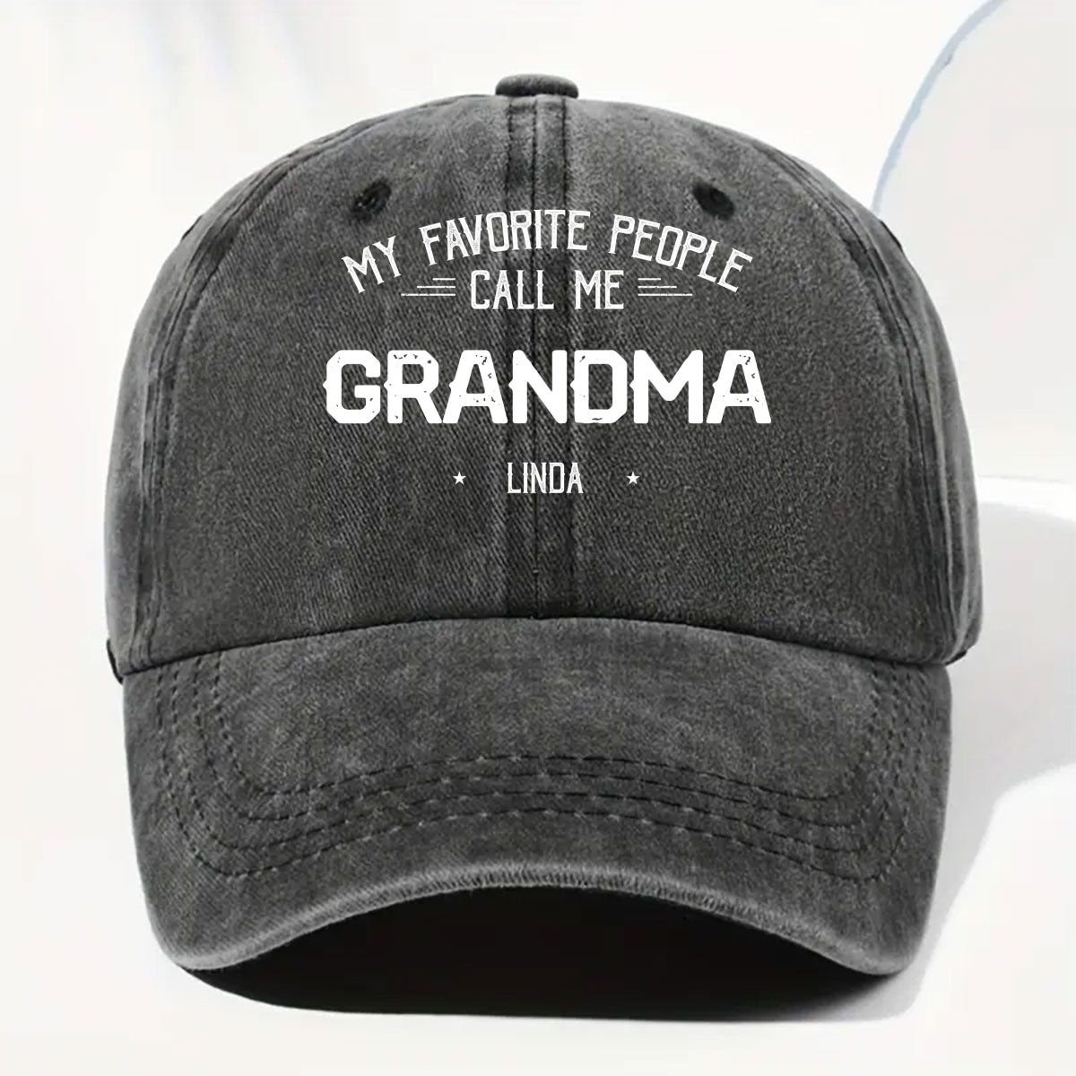 My Favorite People Call Me Grandma Mom - Personalized Custom Vintage Washed Denim Cap