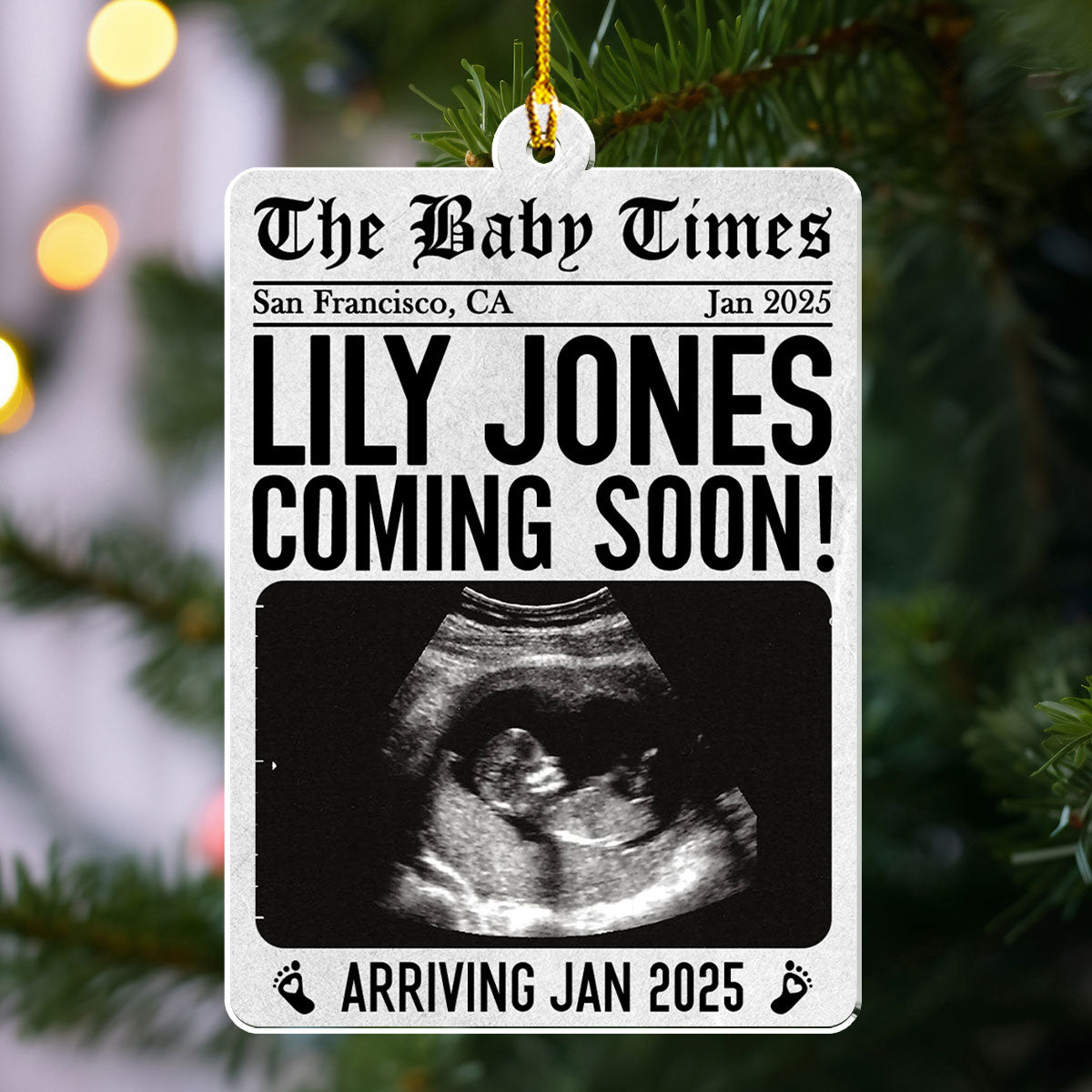 New Baby Announcement Newspaper - Personalized Custom Acrylic Ornament